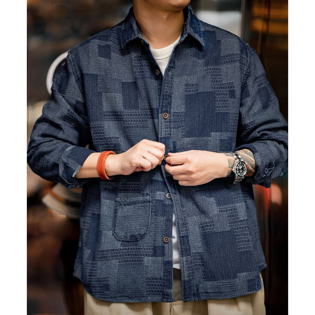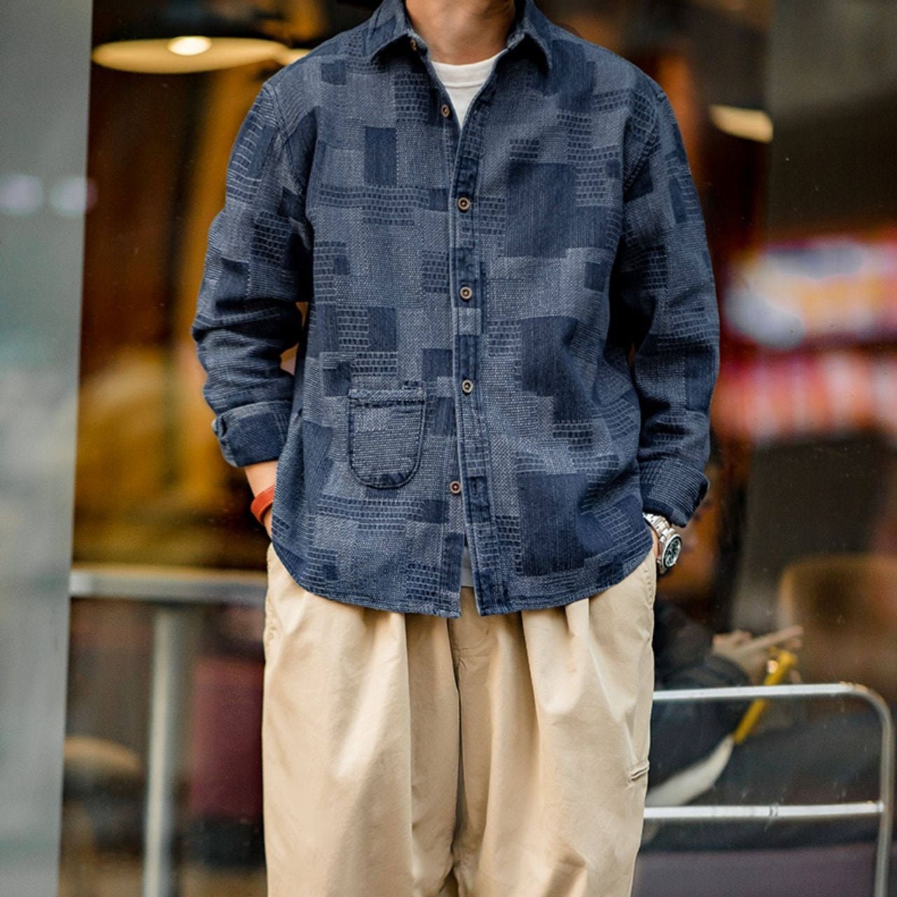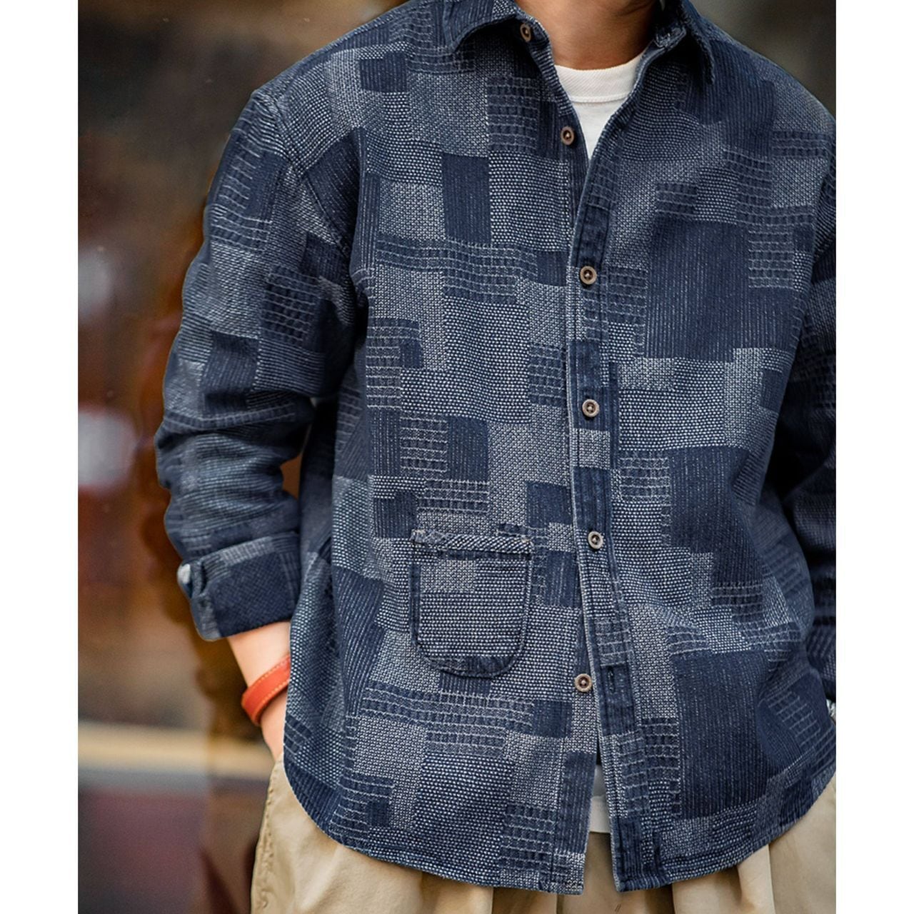 Checkered Patchwork Denim Shirt(GV020)