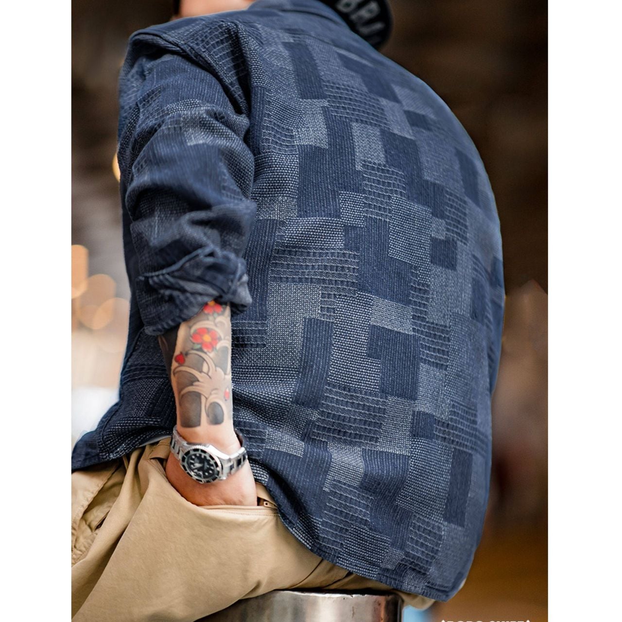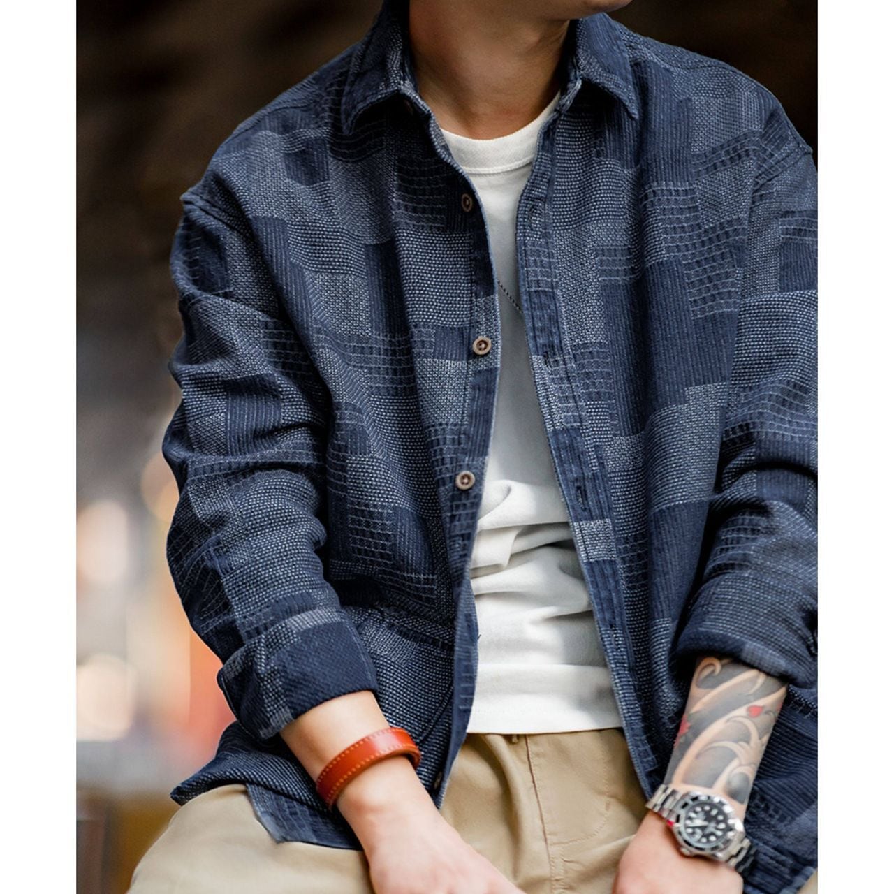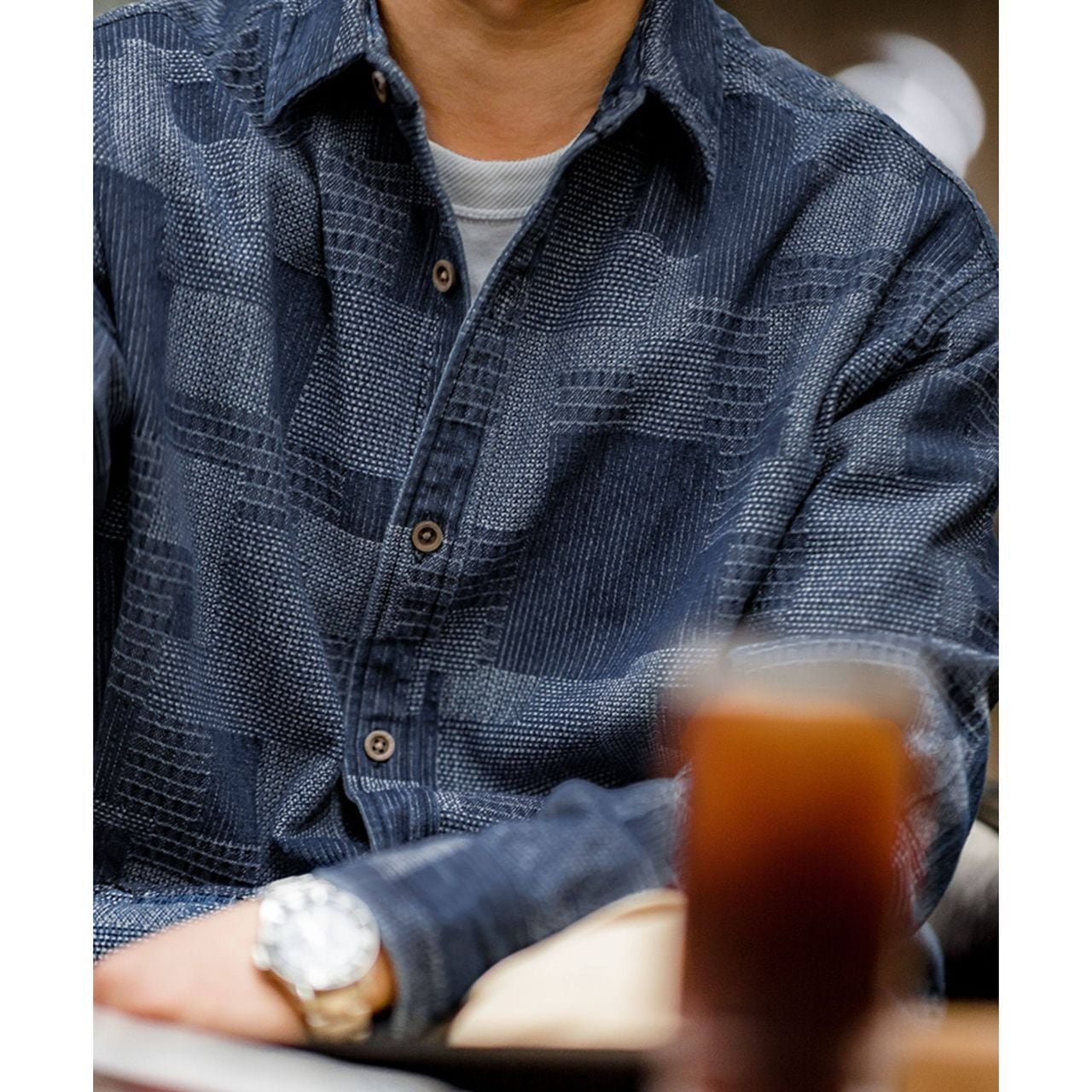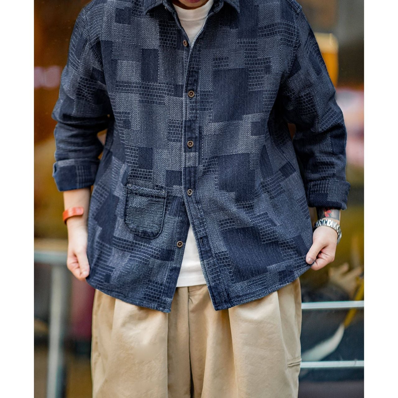 Checkered Patchwork Denim Shirt(GV020)