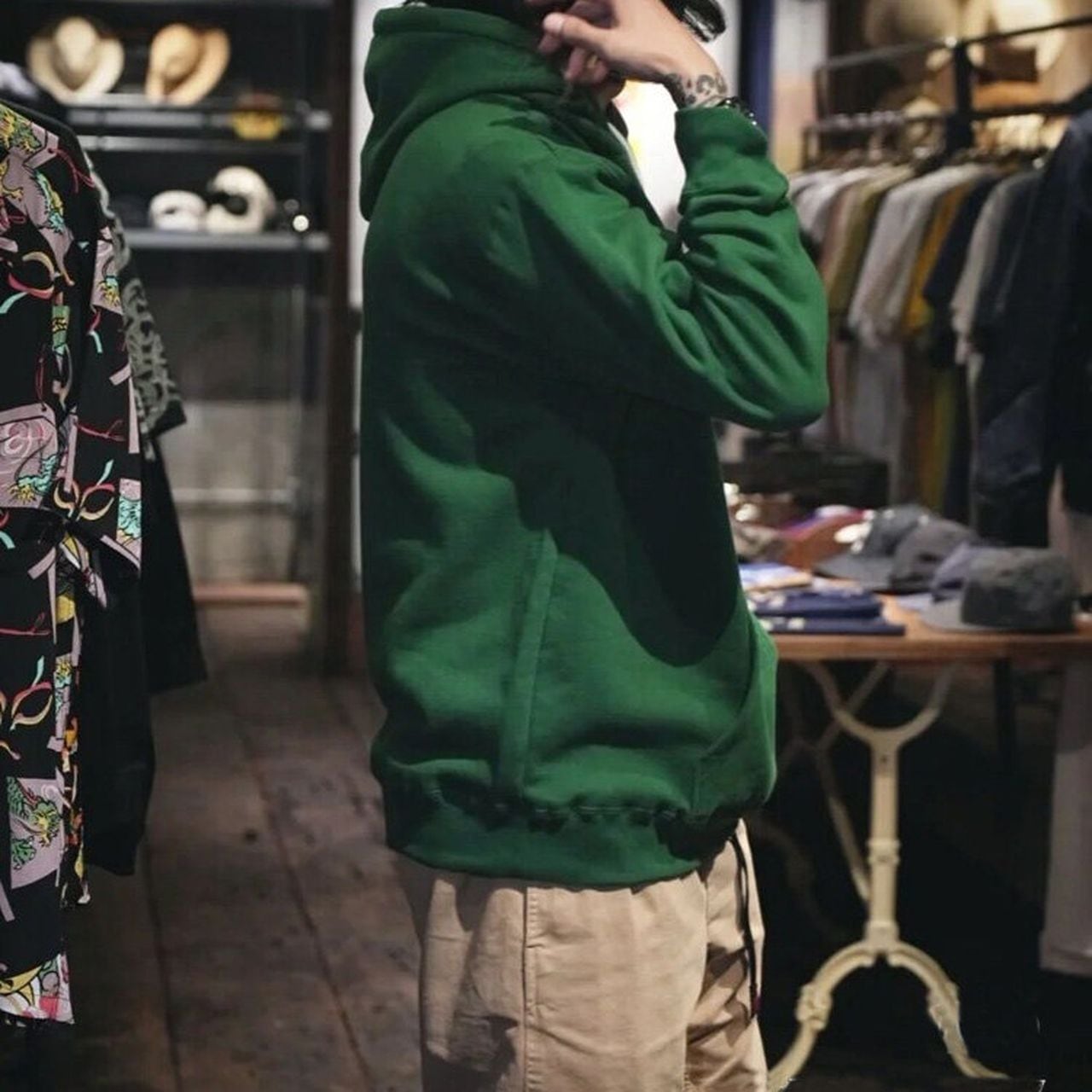 Hooded pullover sweatshirt in green, red, and yellow(GV048)