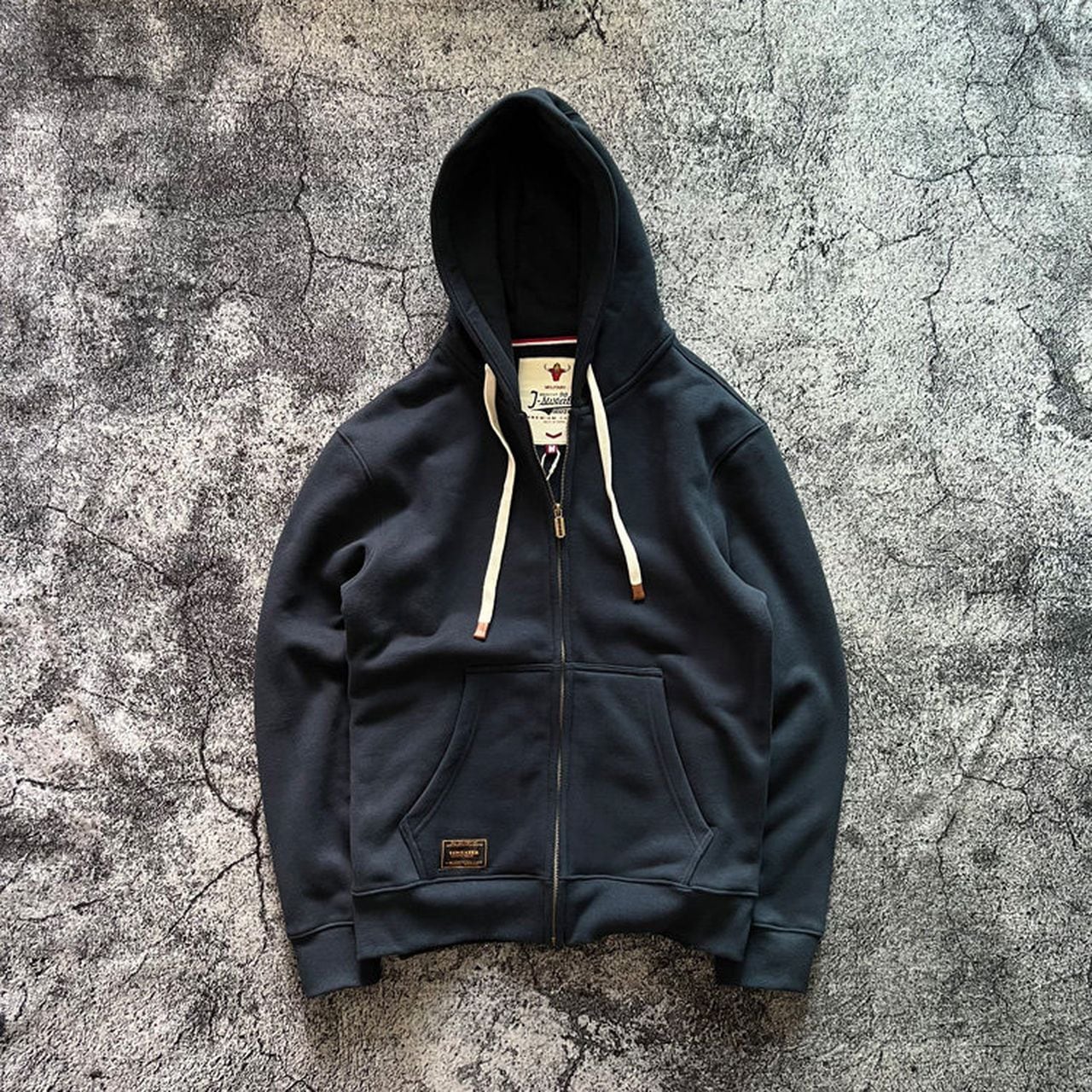 Hooded zipper casual loose sweatshirt in black, gray, and navy(GV052)