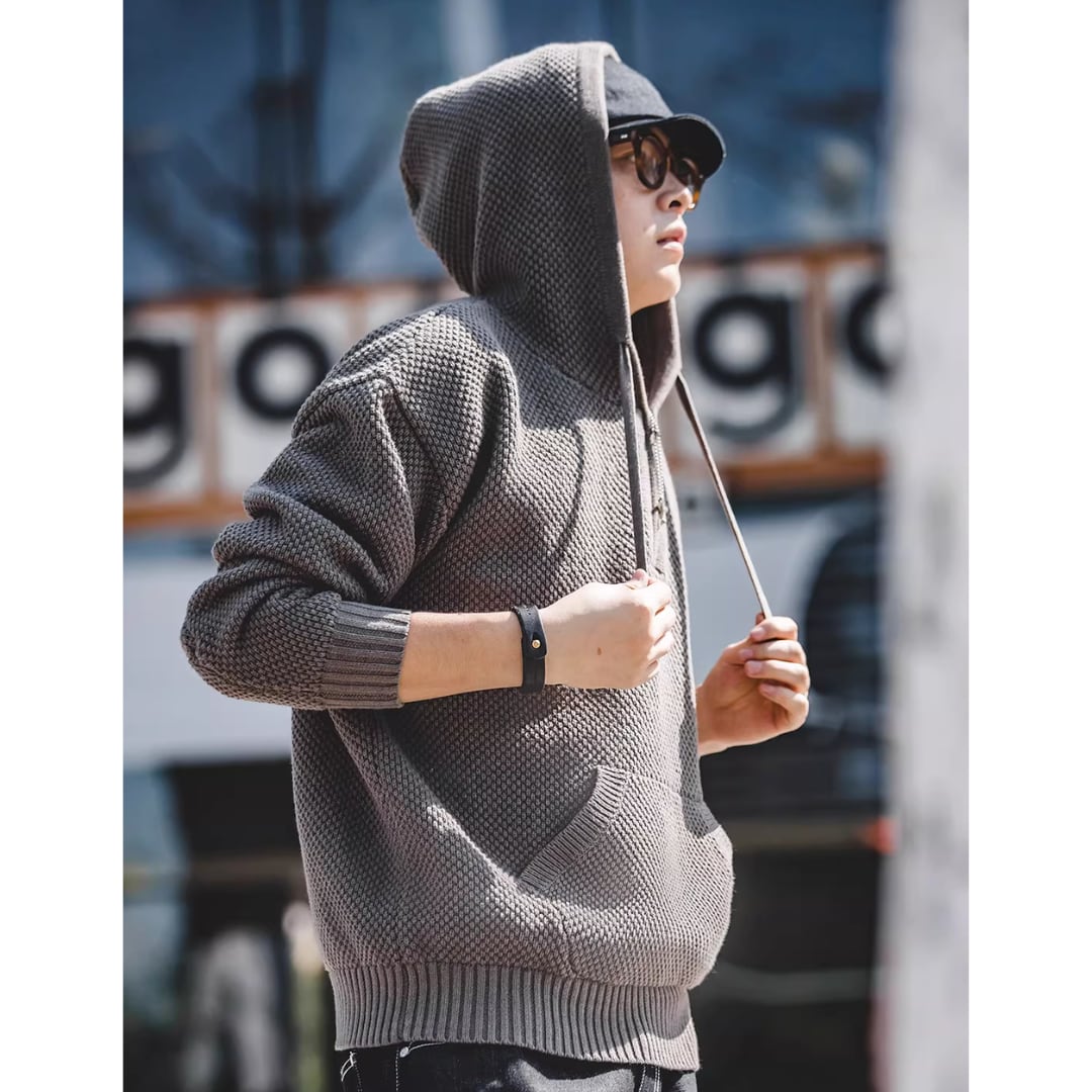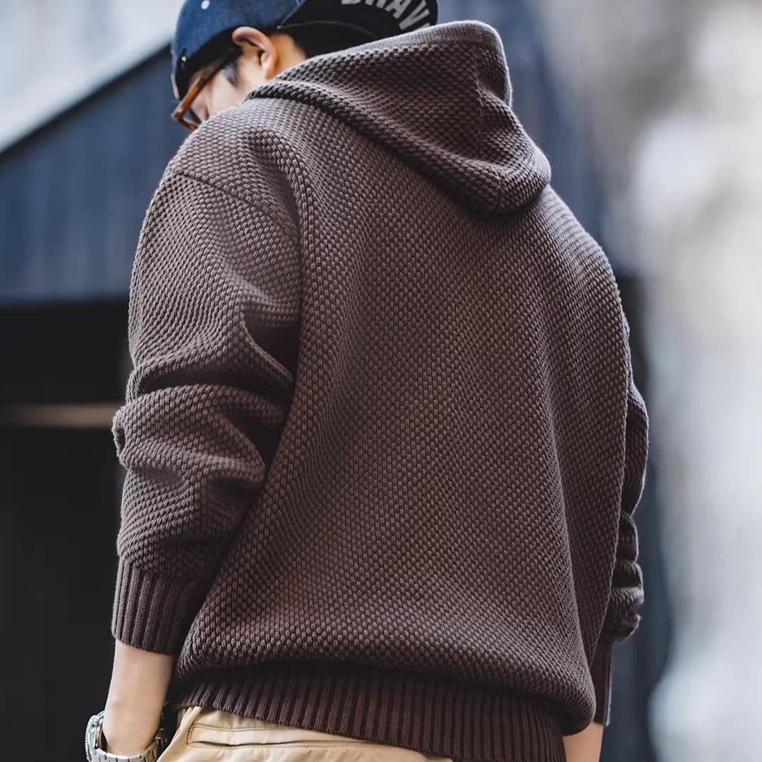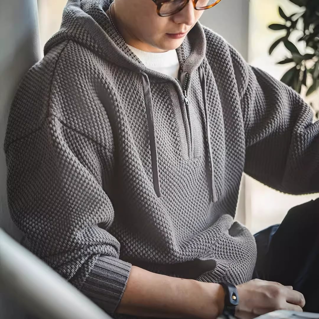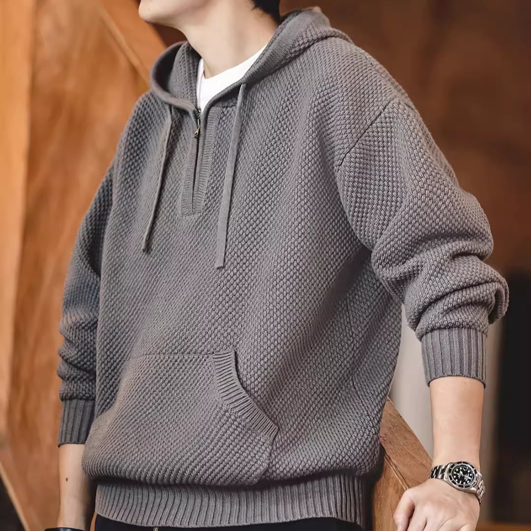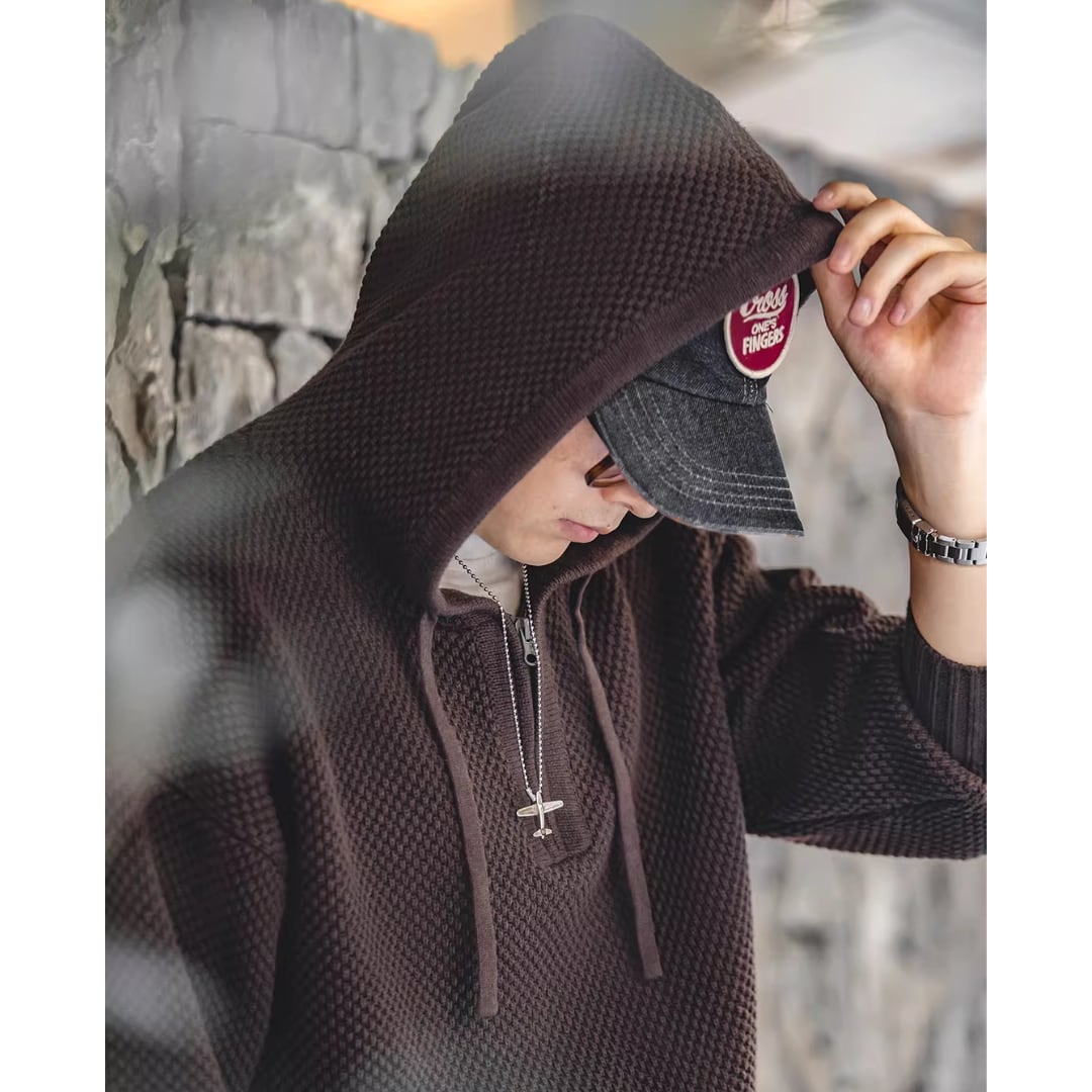 Half-Zip Sweater Pineapple Pattern Hooded(GV153)