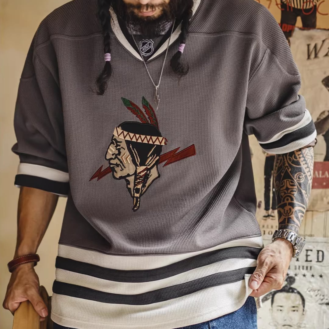 Indian V-neck Waffle Heavyweight Sweatshirt(GV154)
