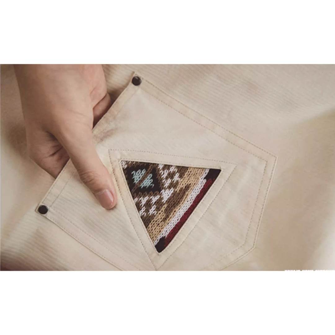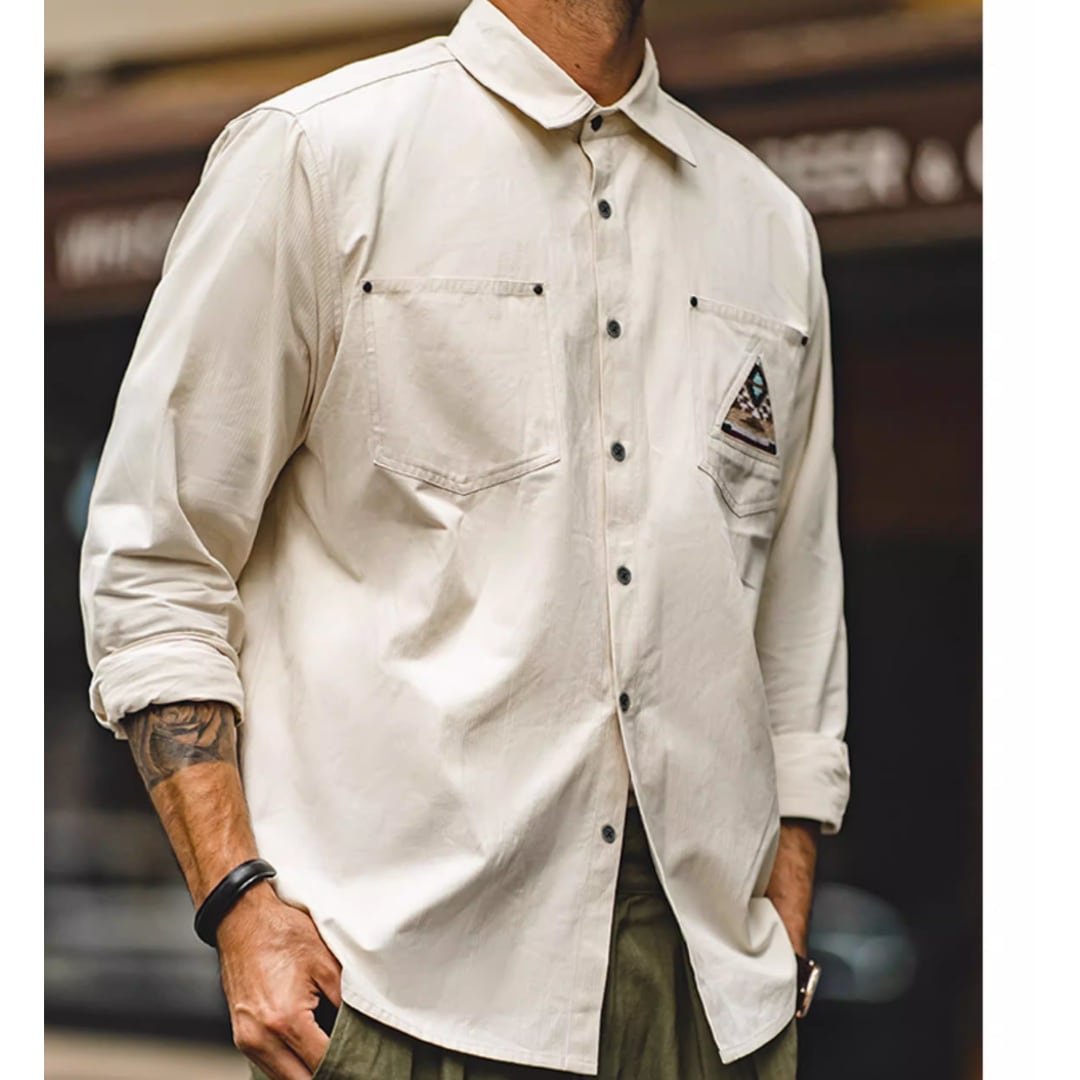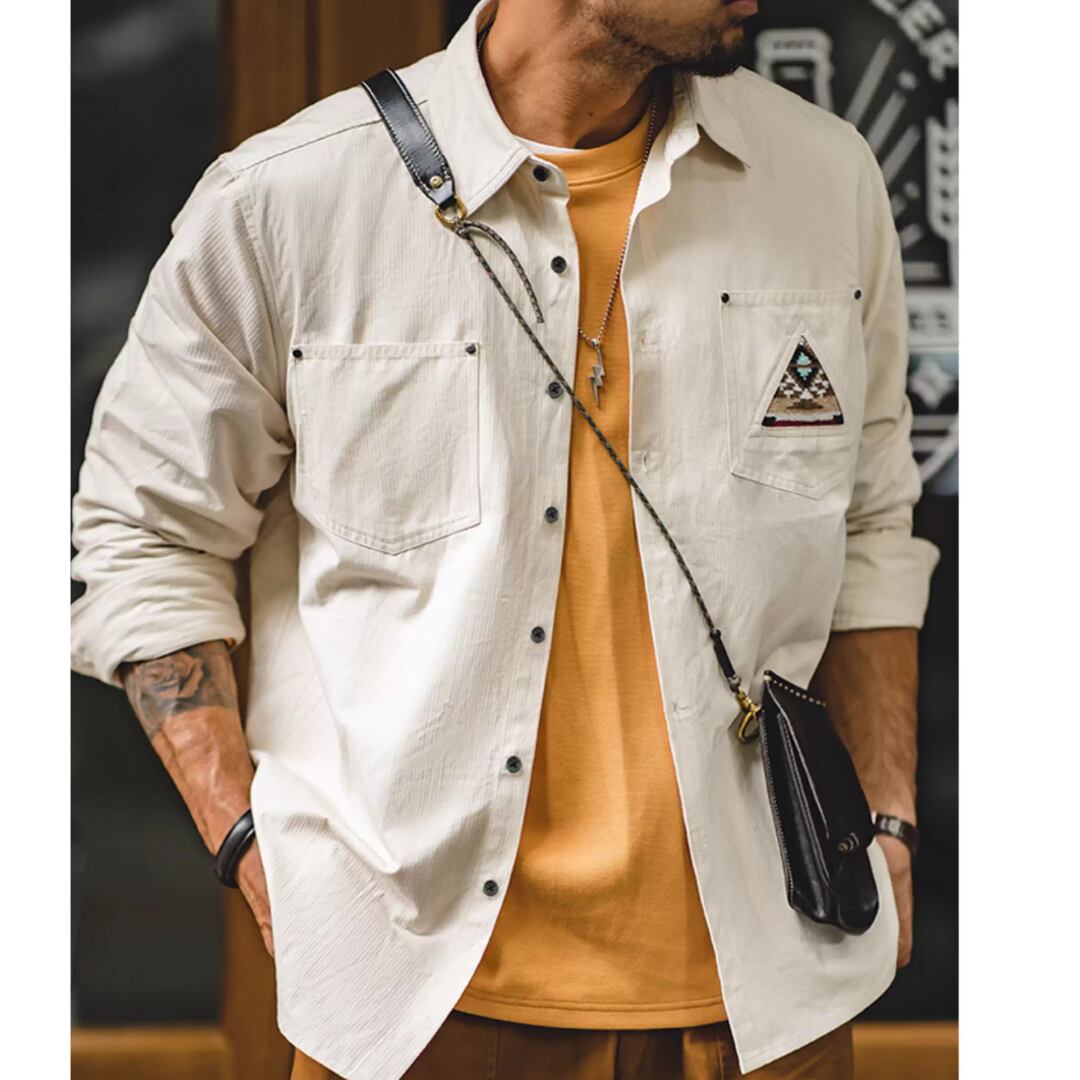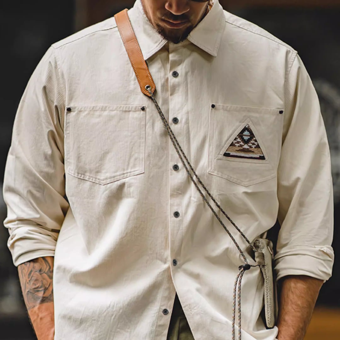 Long-Sleeve Workwear Shirt with Indian Totem Pattern(GV159)