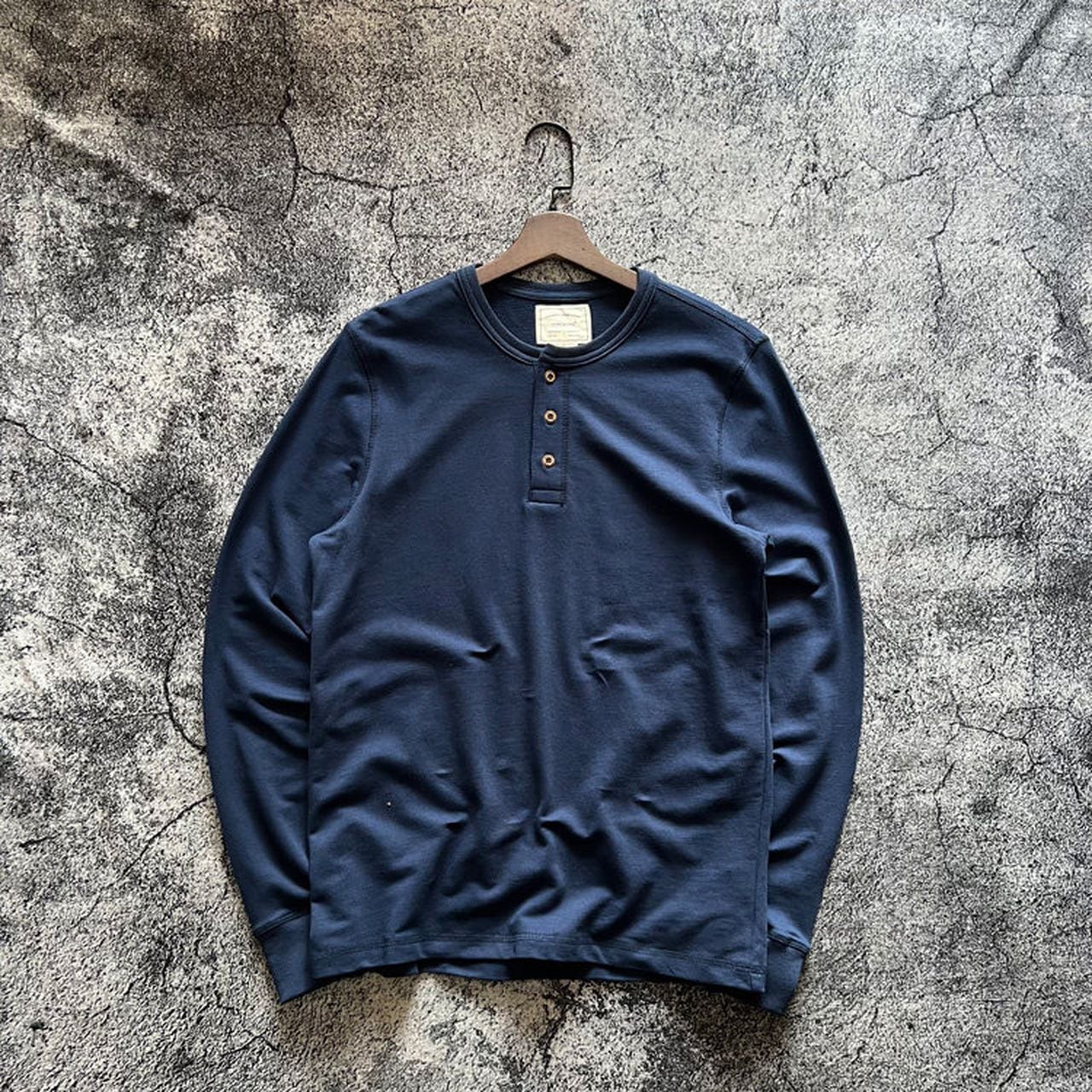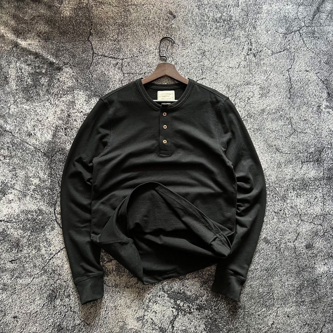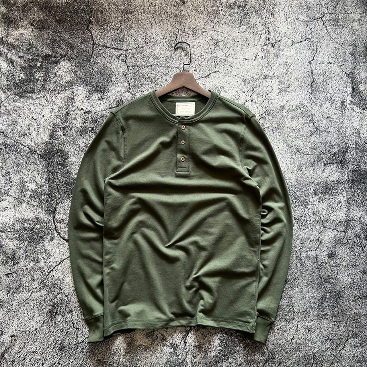 Plain open collar loose long sleeve henley shirt(GV064)