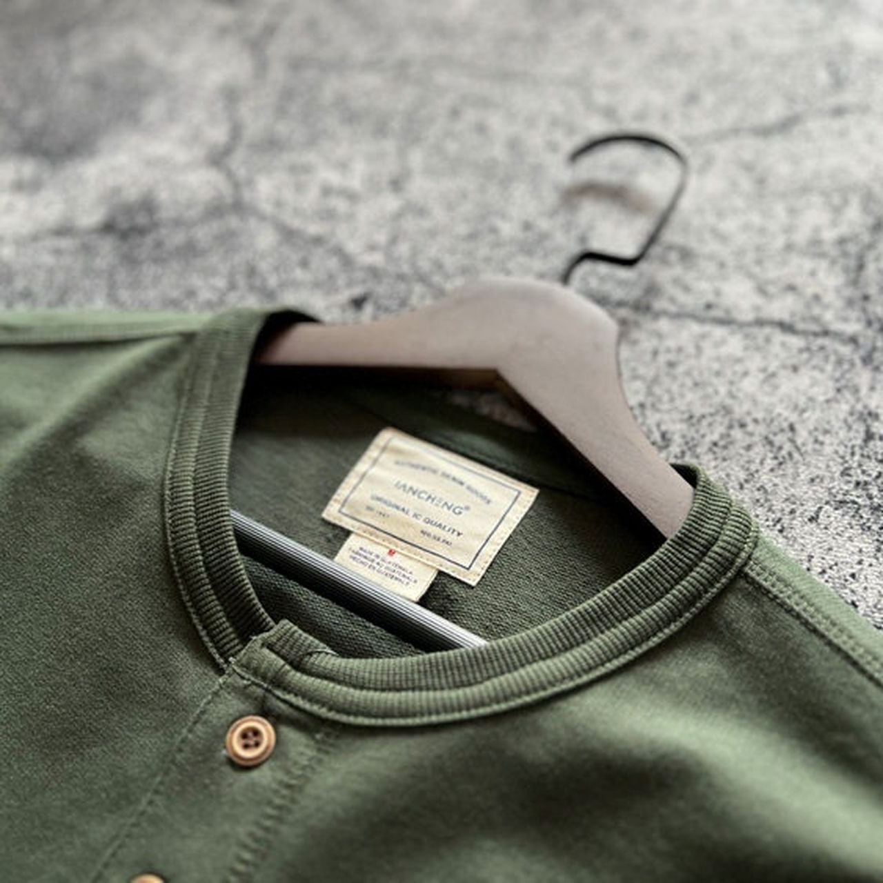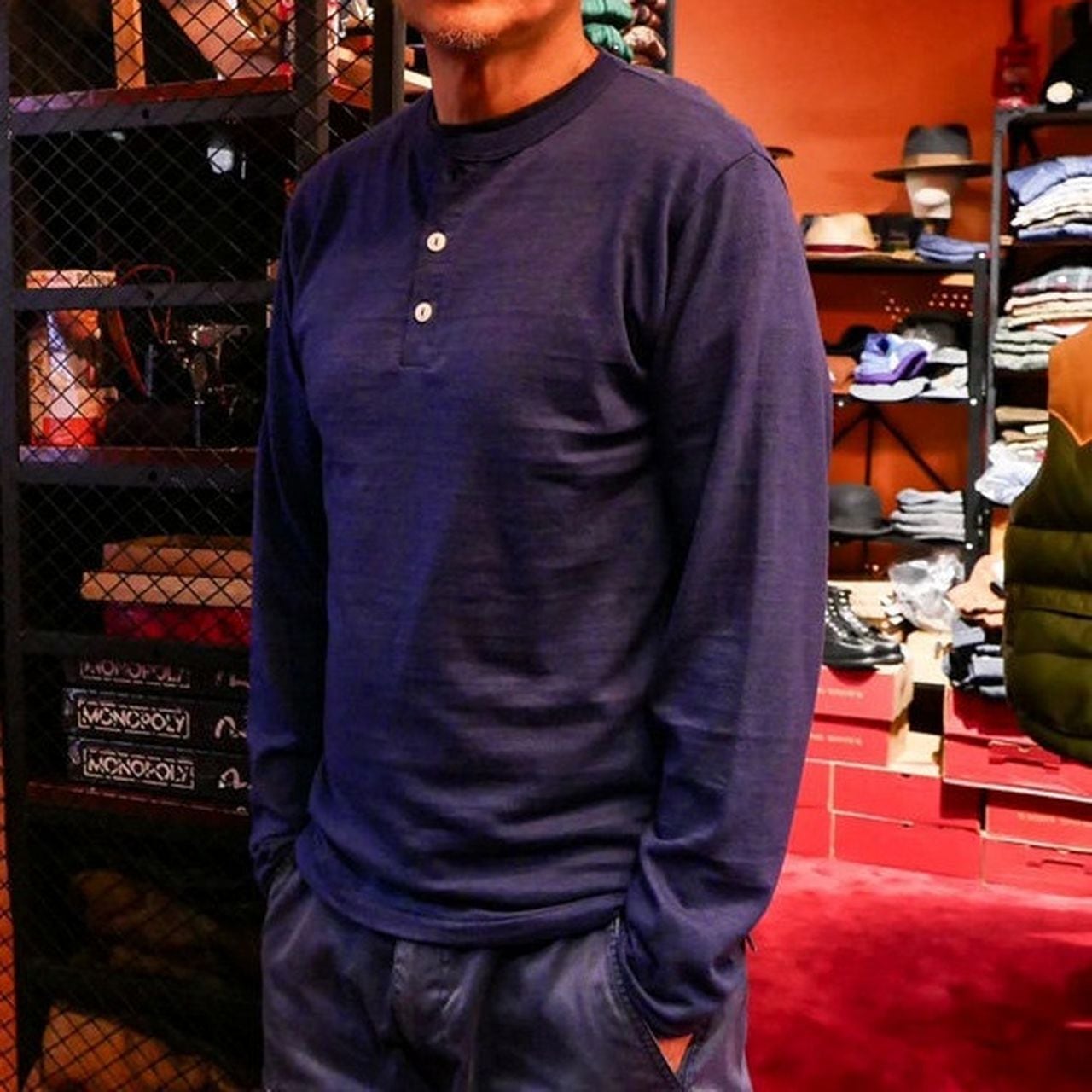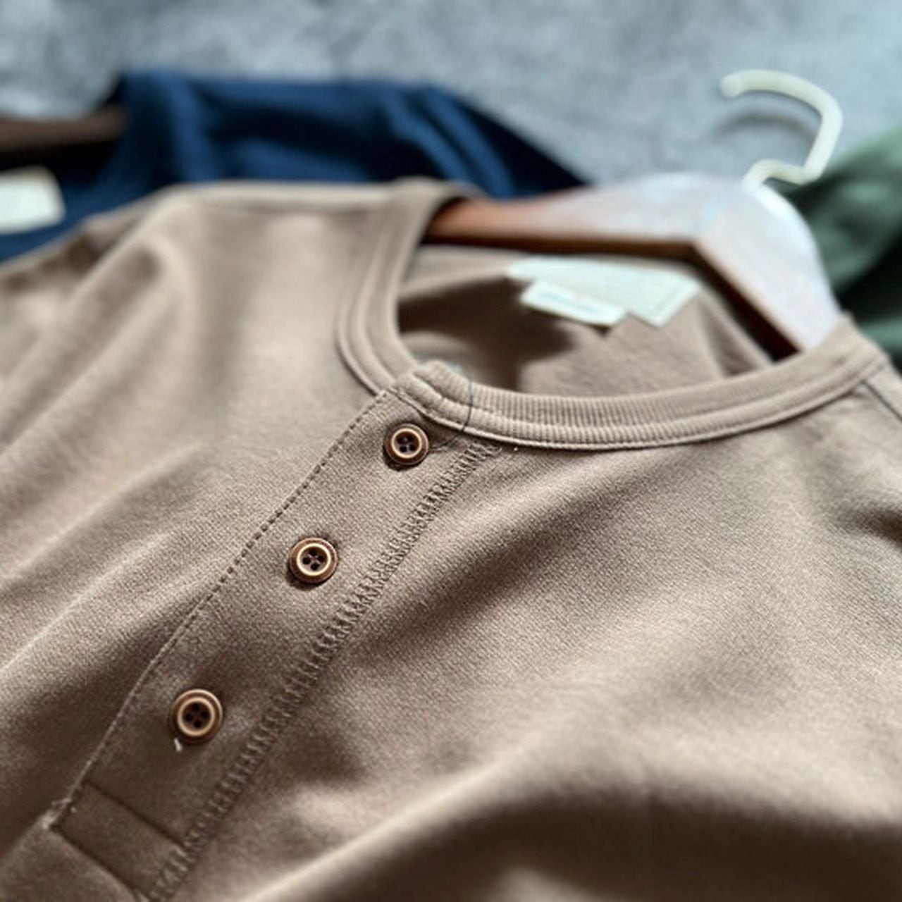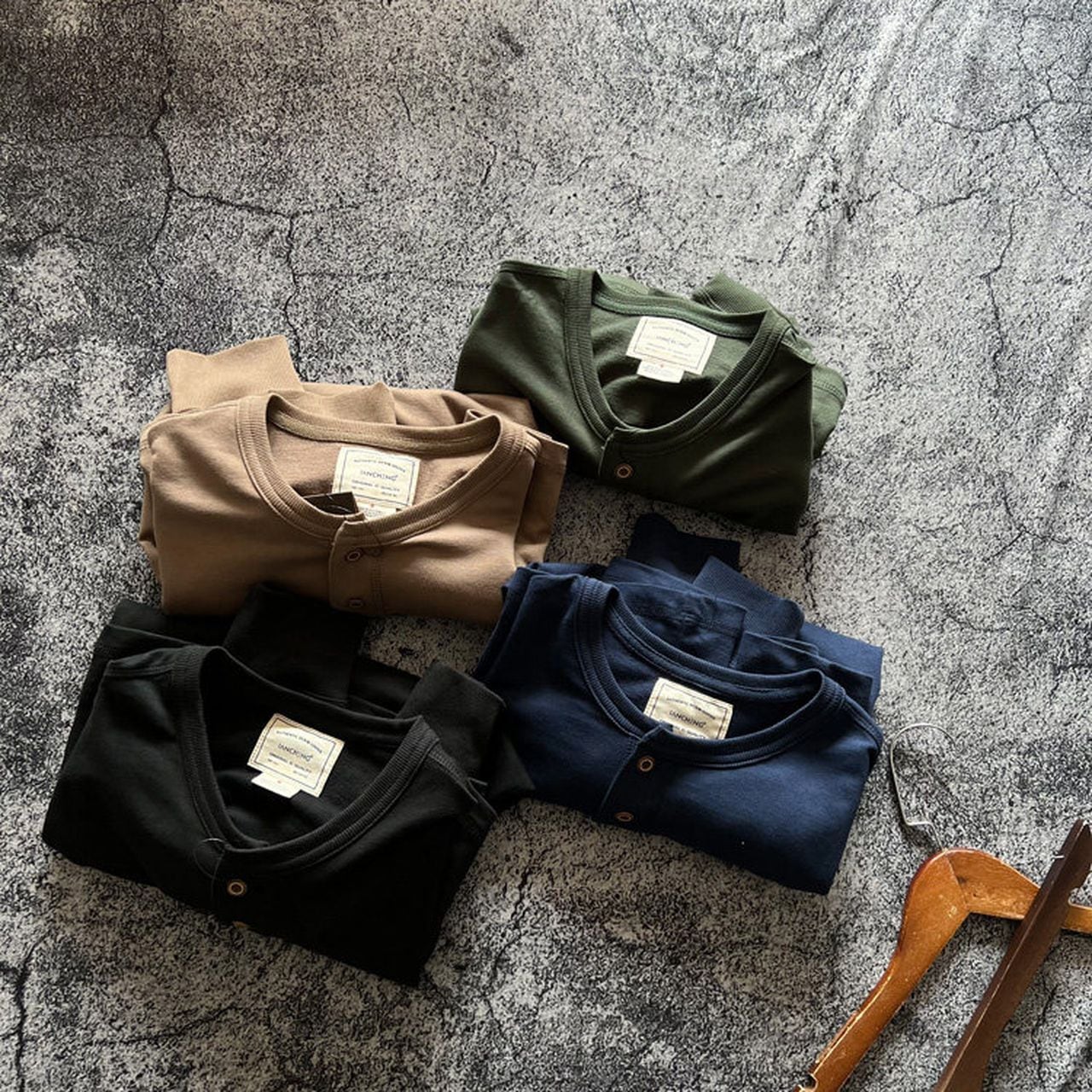 Plain open collar loose long sleeve henley shirt(GV064)