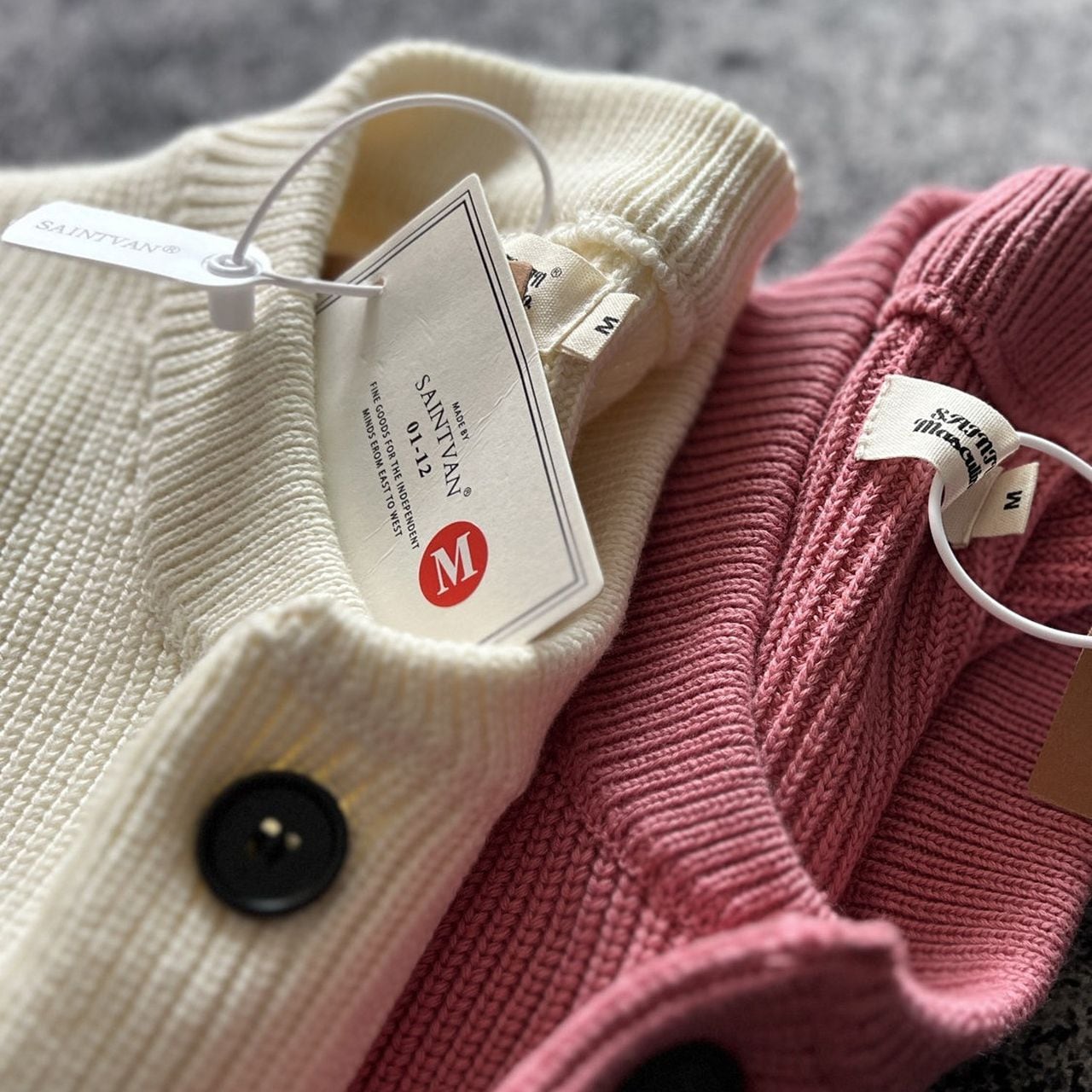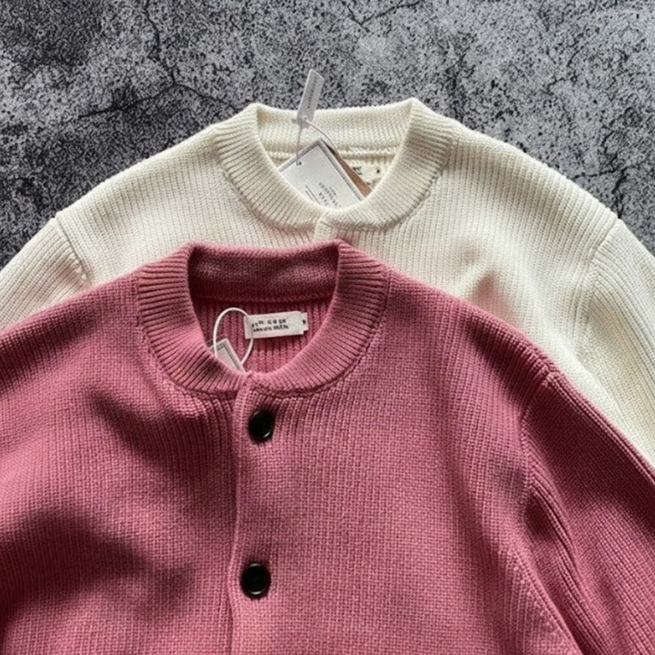 Scandinavian retro style cardigan in peach, beige, and white(GV072)