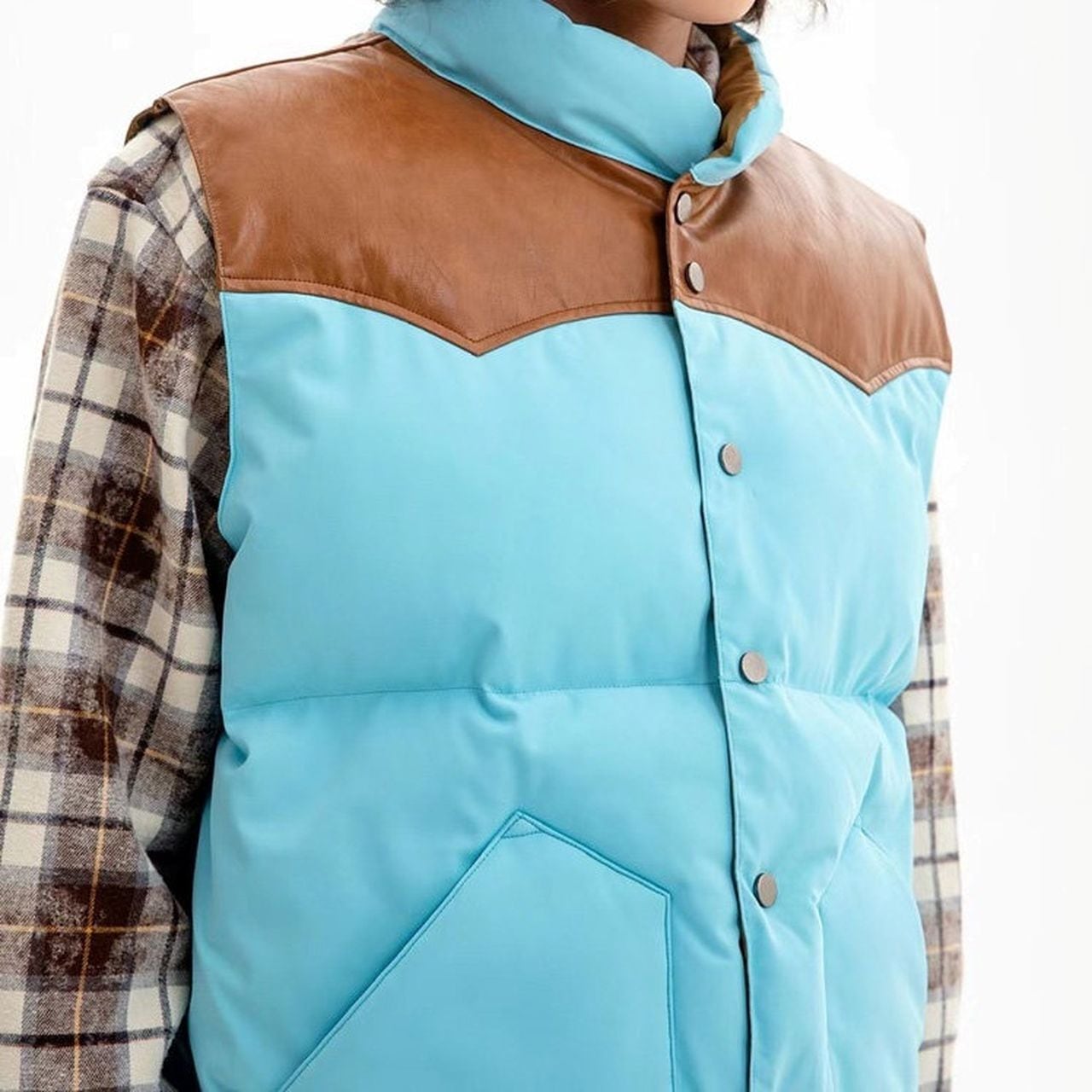 Retro patchwork two-tone vest in yellow, green, and blue(GV076)