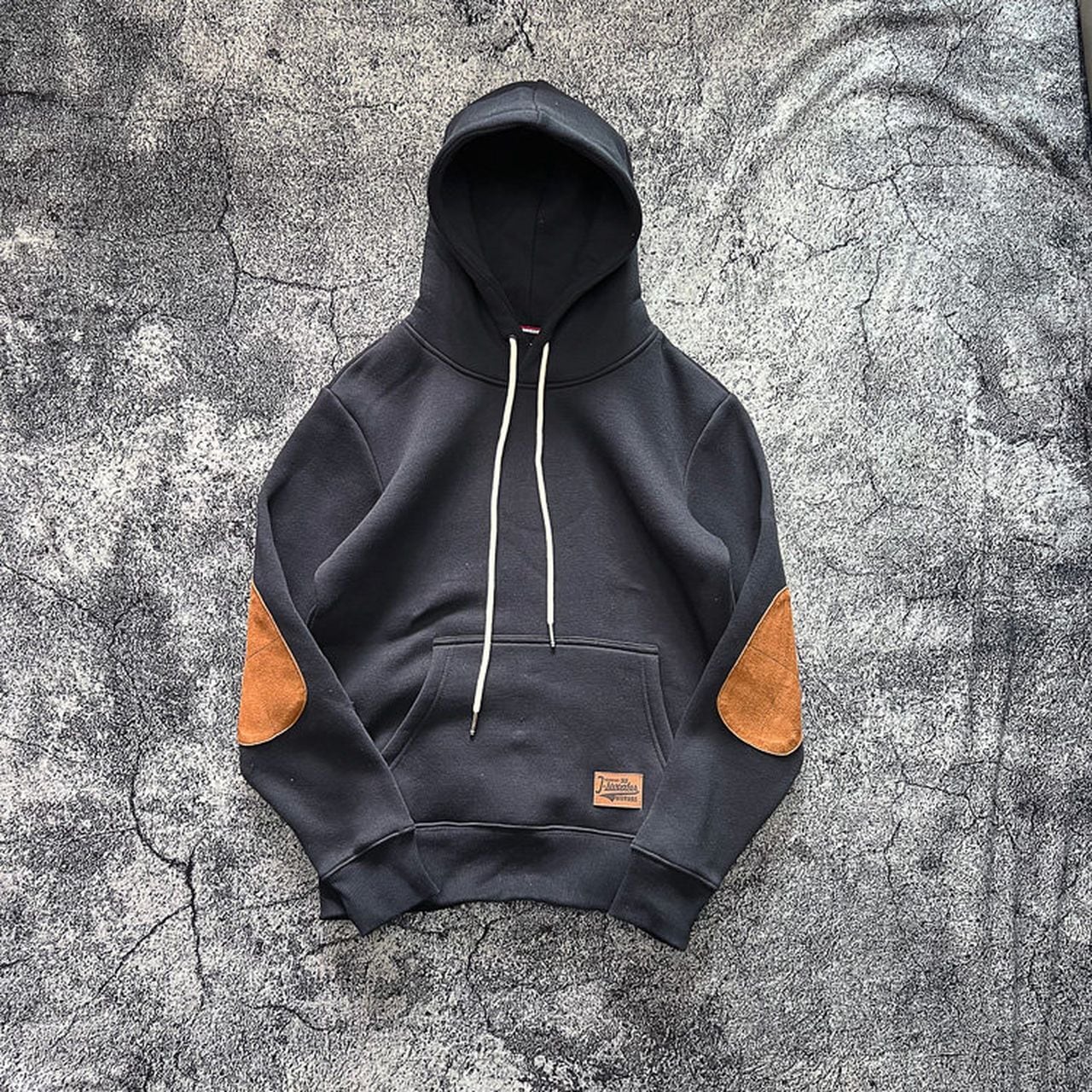 Loose pullover patchwork hooded jacket in black, gray, and navy(GV087)