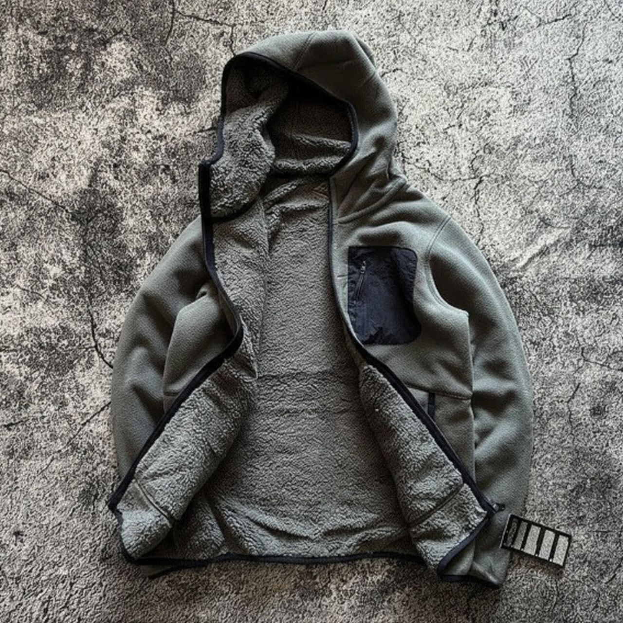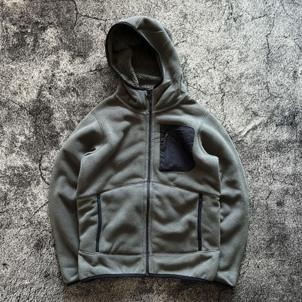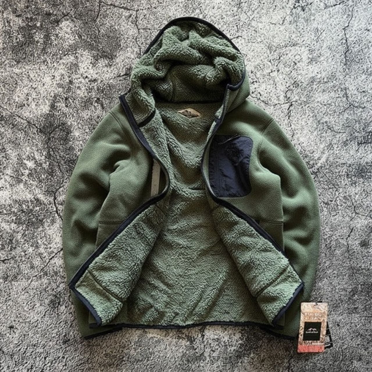 Soft fleece hooded loose pocket jacket in navy blue, green, and gray(GV089)