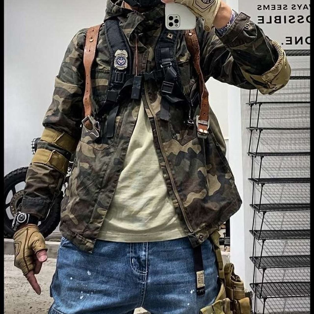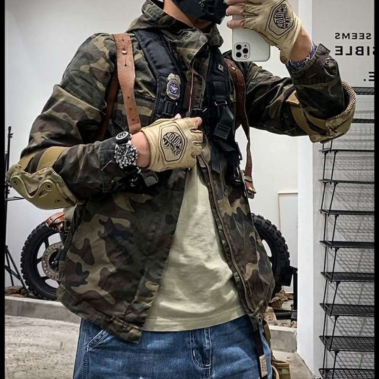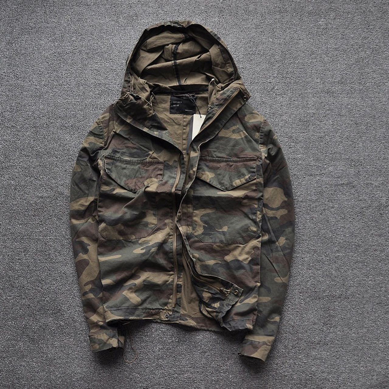 Hooded zip-up multi-pocket camouflage jacket(GV091)