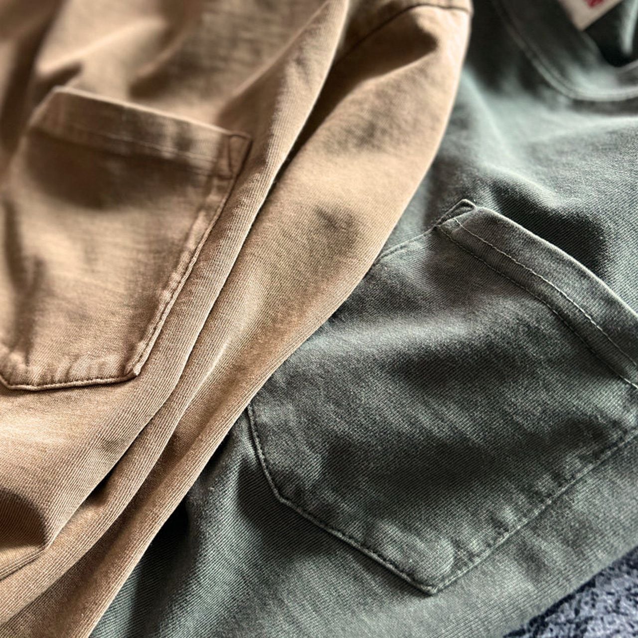 Crew neck pocket long sleeve loose fit T-shirt(GV094)