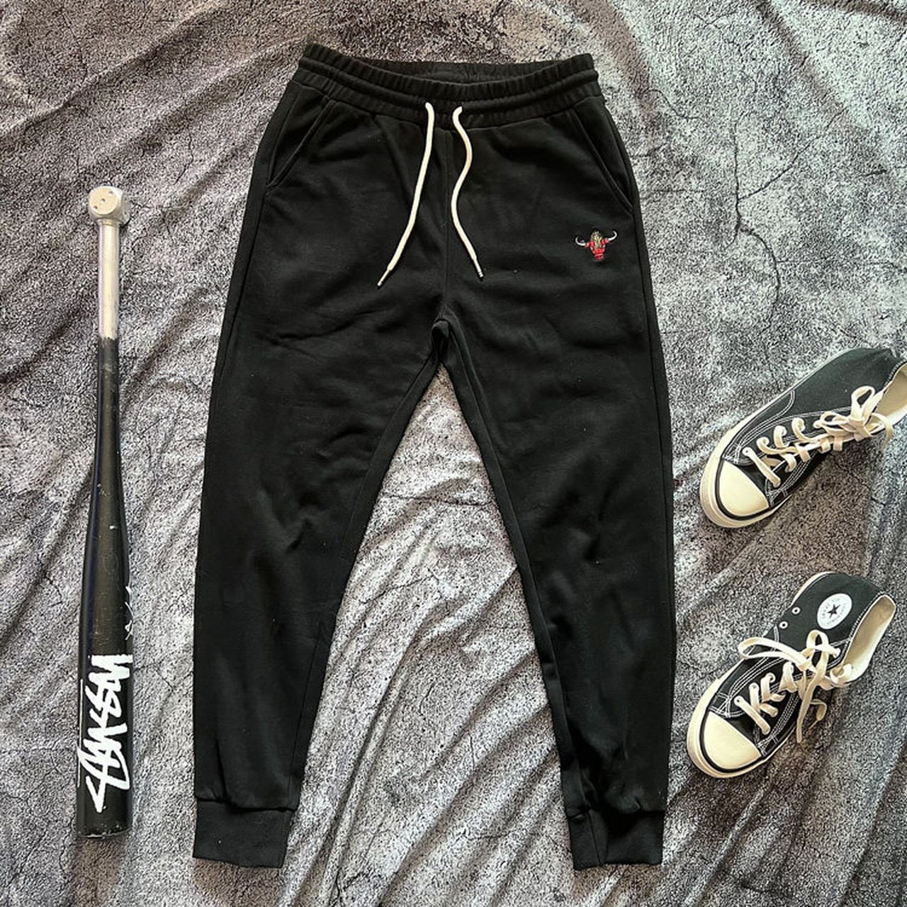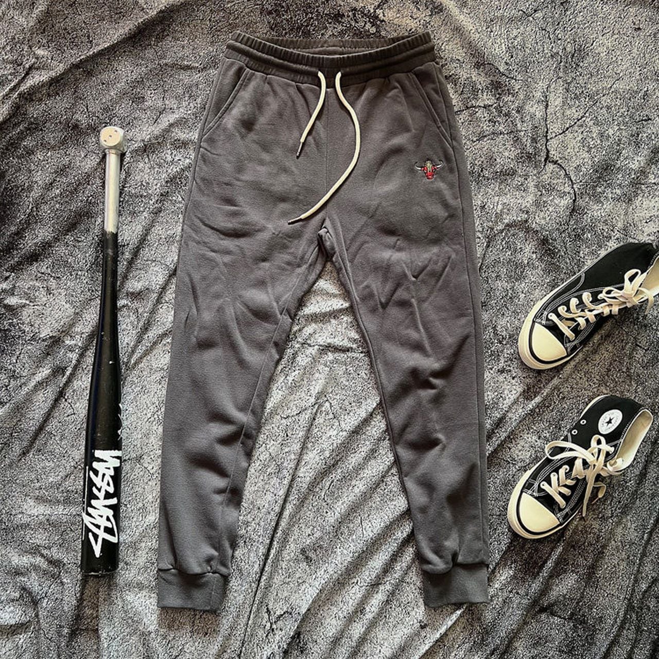 Embroidered loose fit tapered sweatpants in navy, black, and gray(GV096)