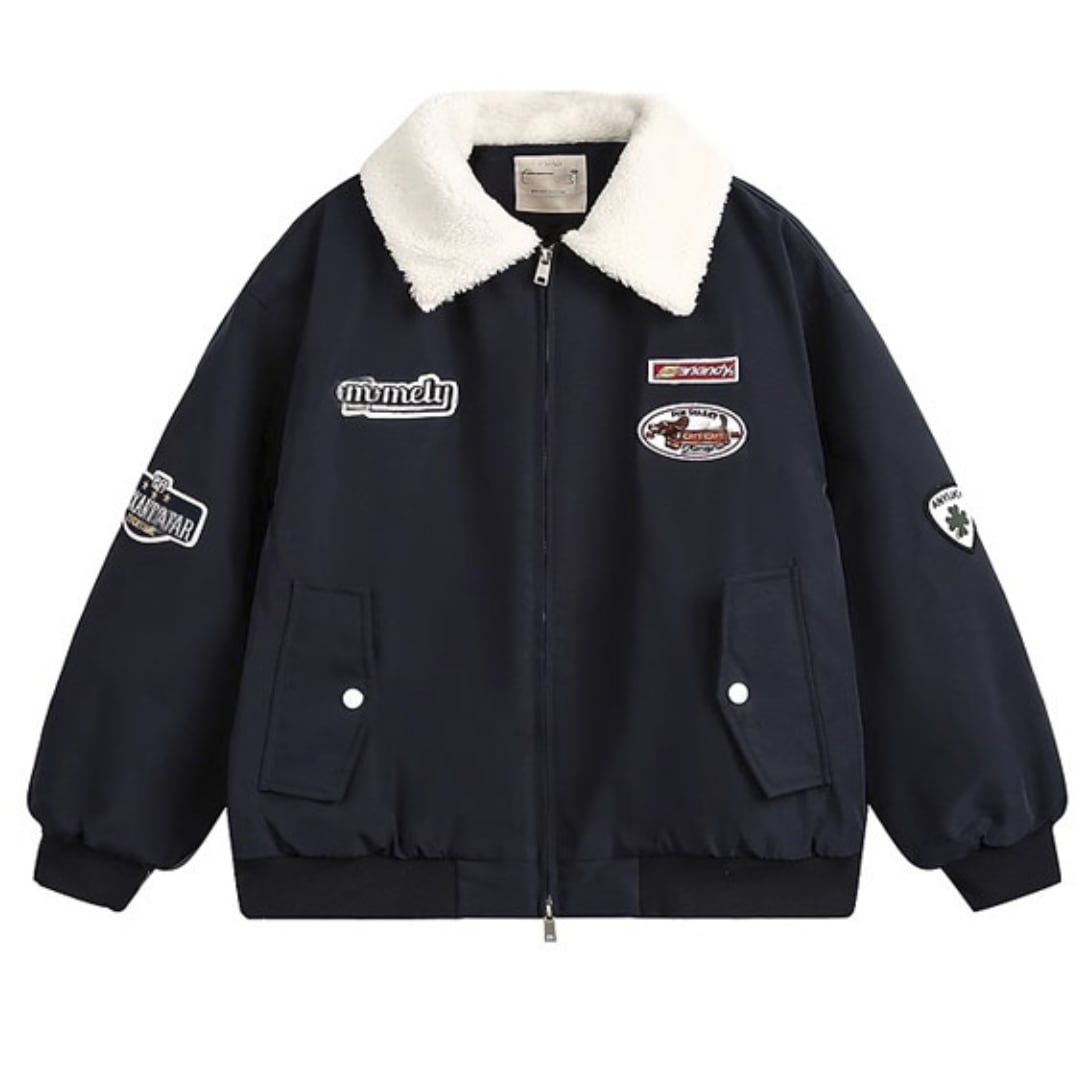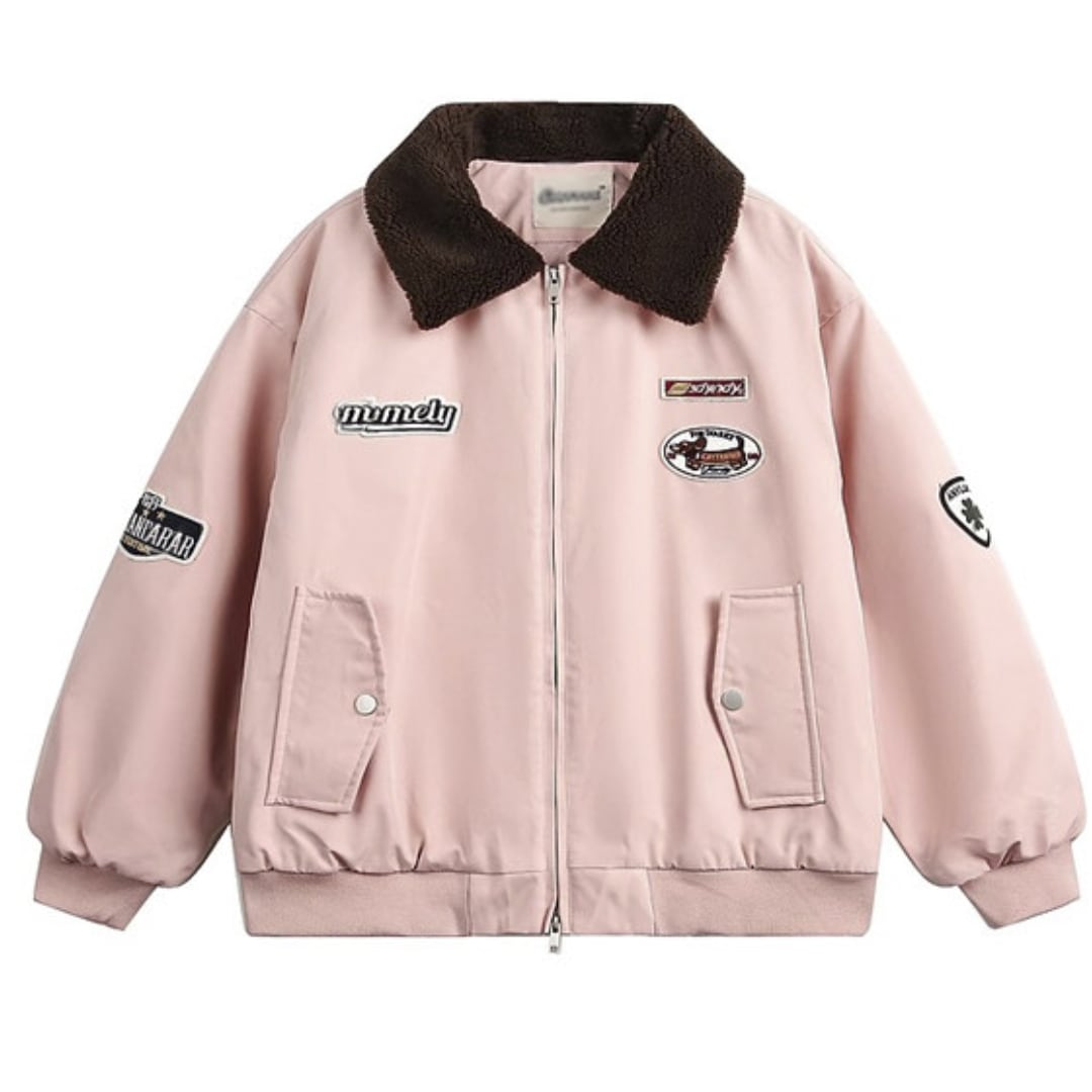 preppy style embroidered lamb wool collar cotton coat(GV207)