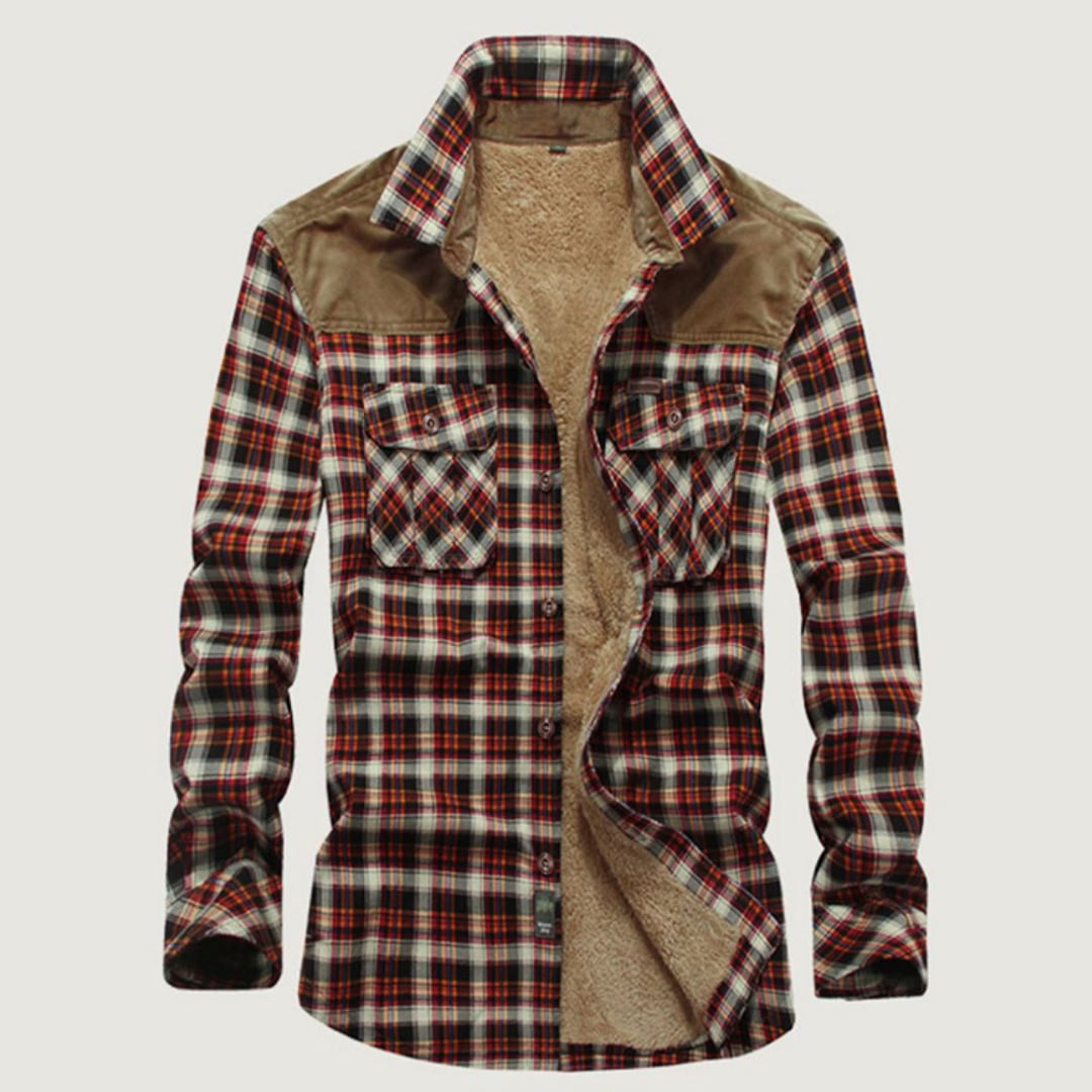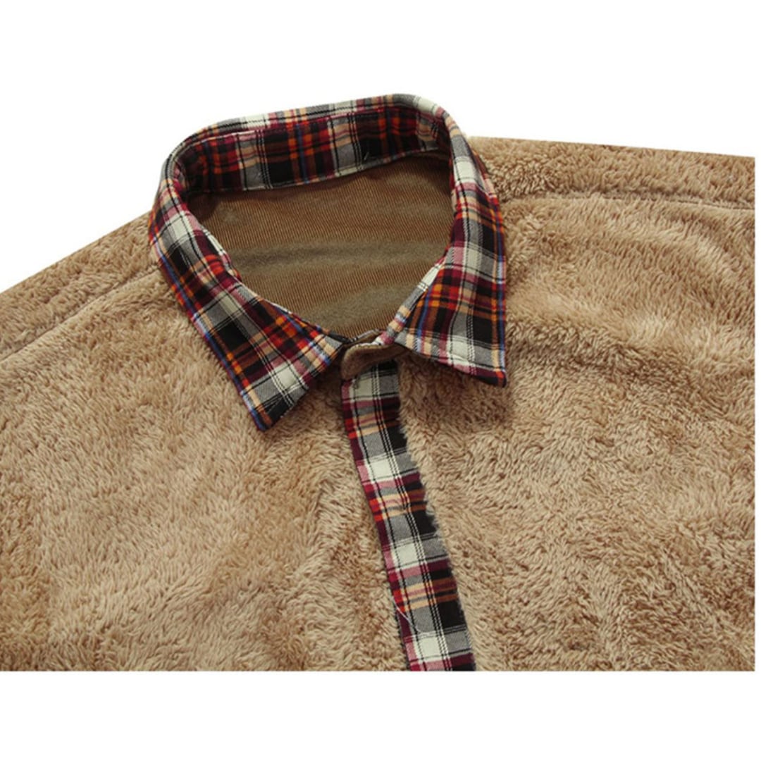 Plaid Long-Sleeved Shirt with Fleece Lining(GV212)