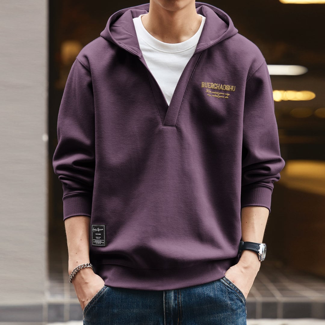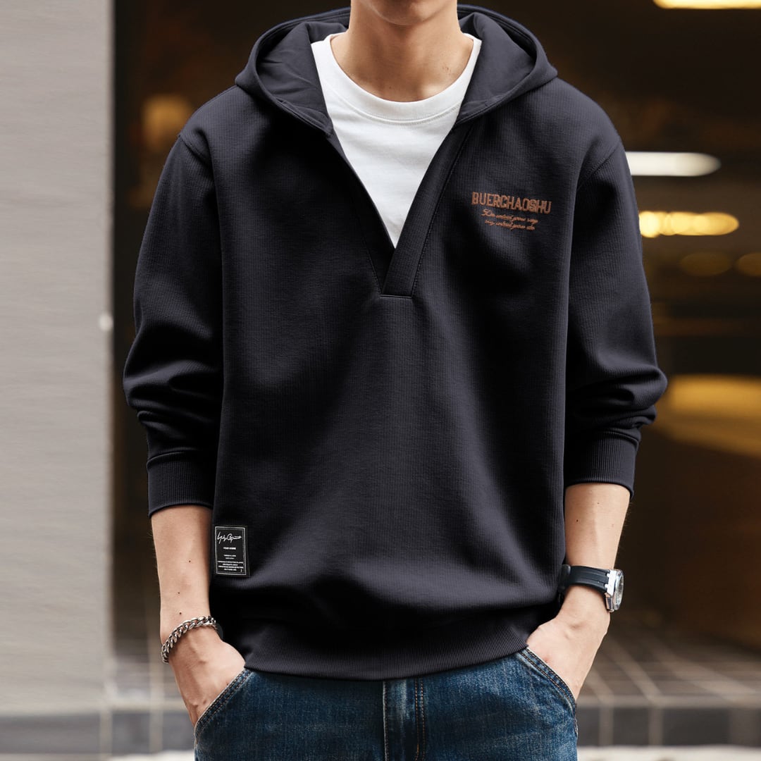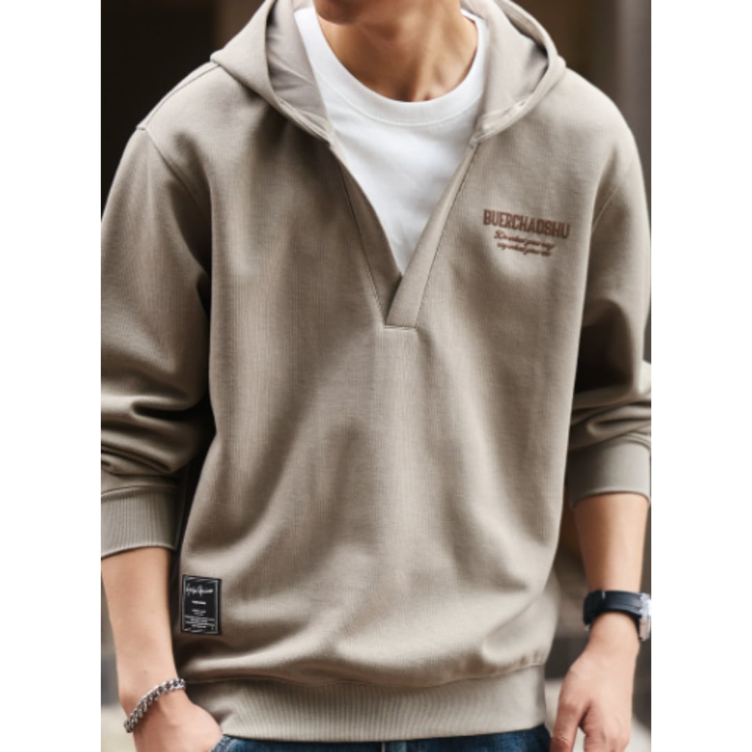 Lazy Embroidered V-Neck Hooded Sweatshirt(GV249)