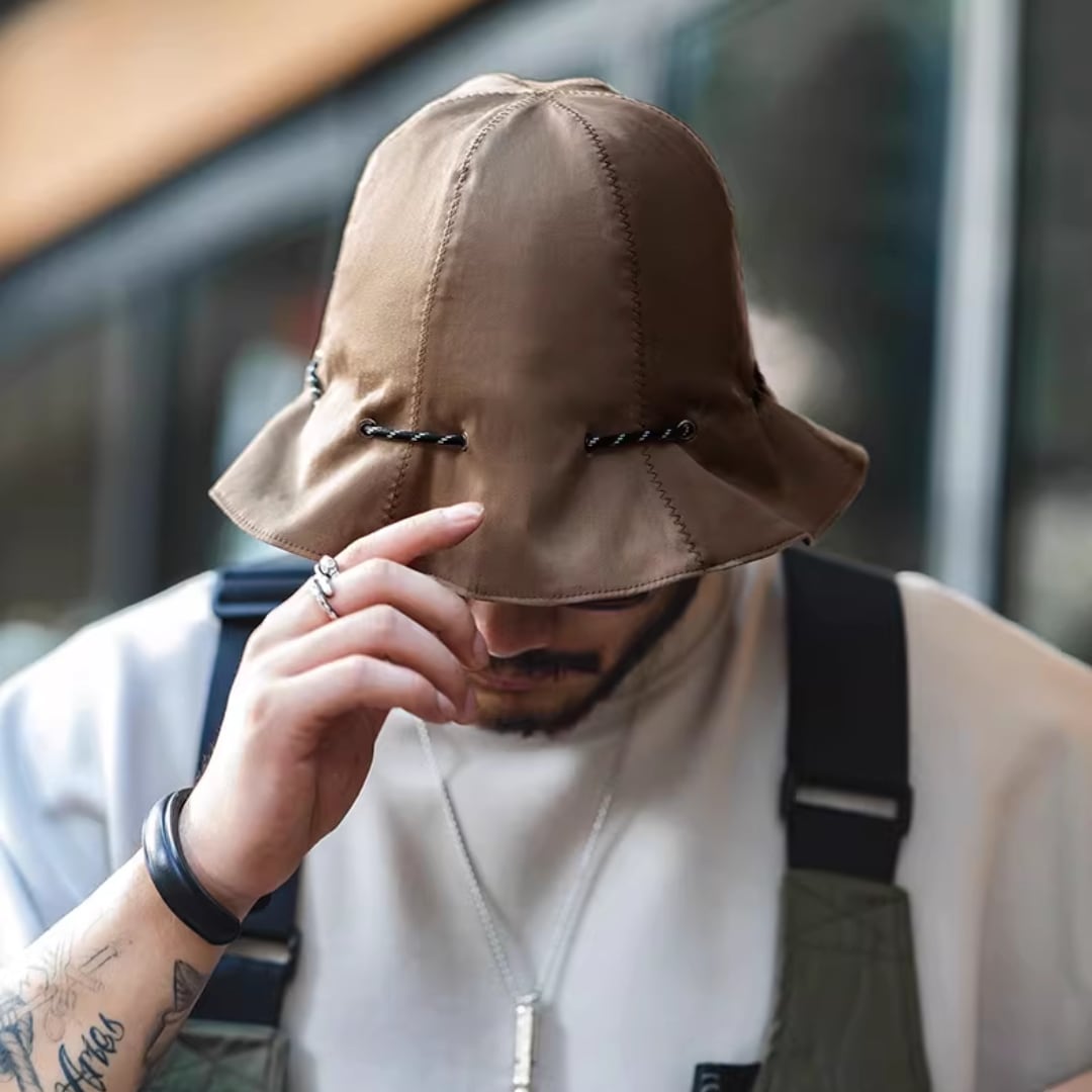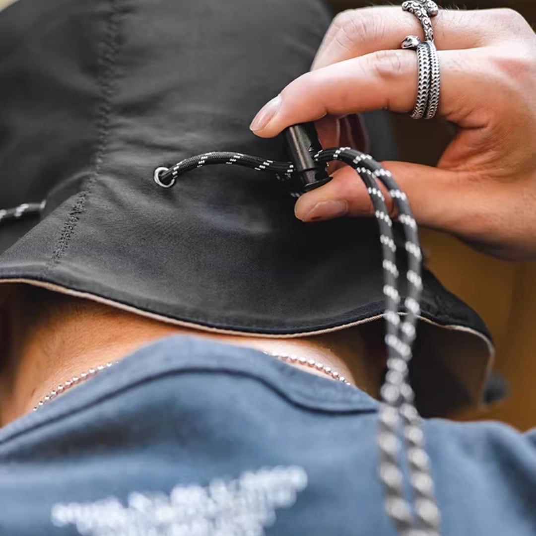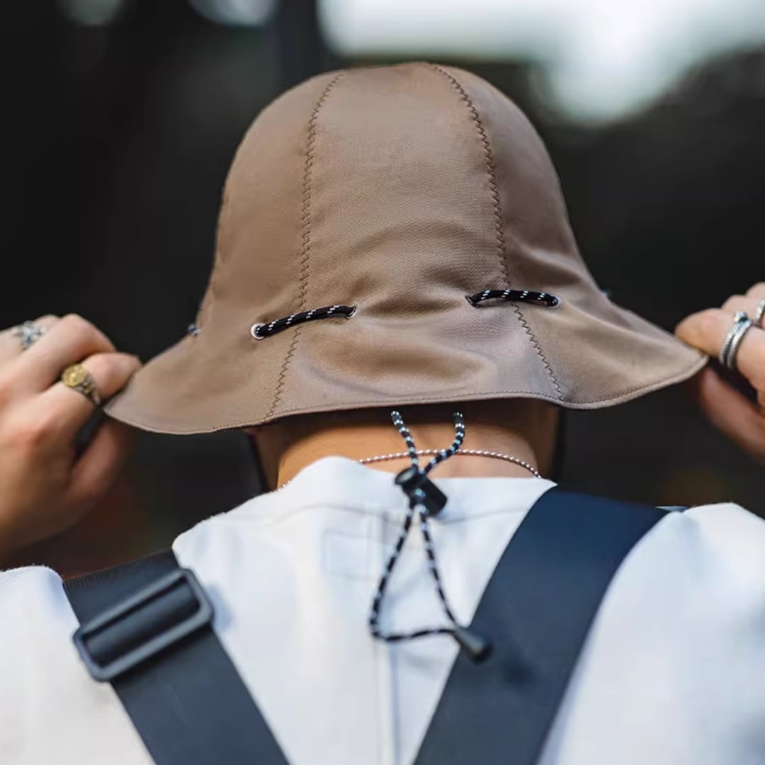 頭囲:59–64cm、帽子の高さ:24cm、つばの外周:86cm、紐の長さ:110cm