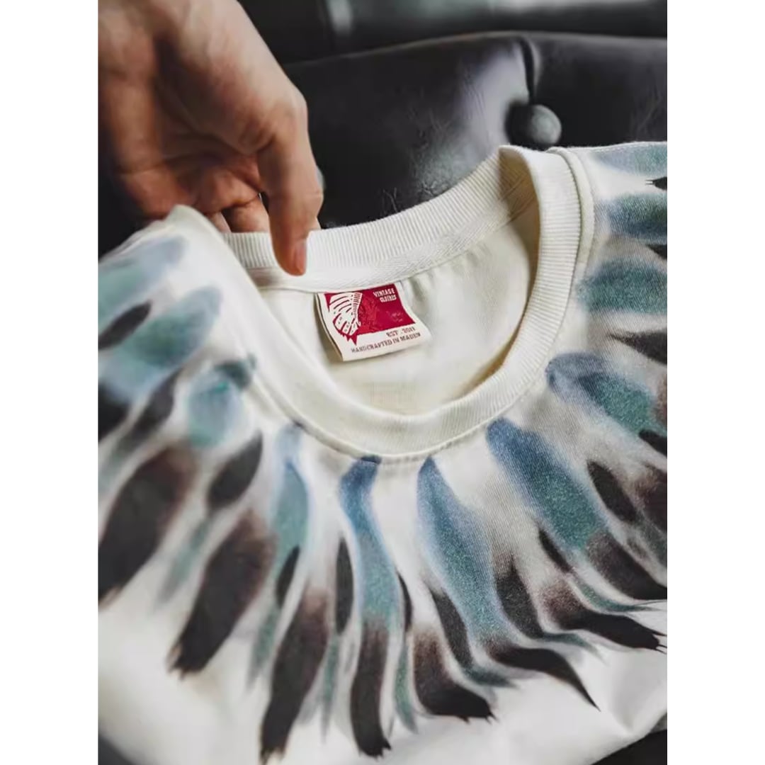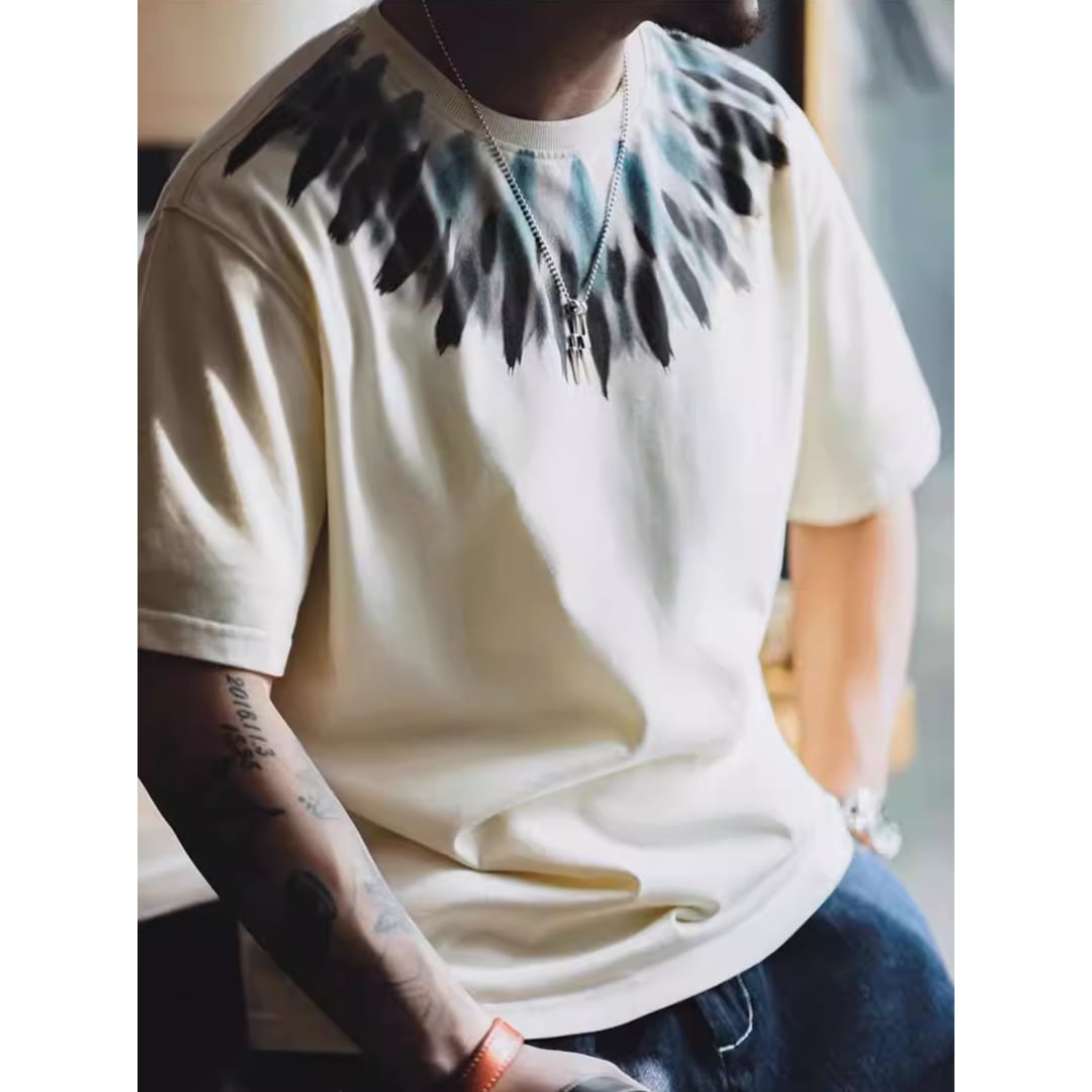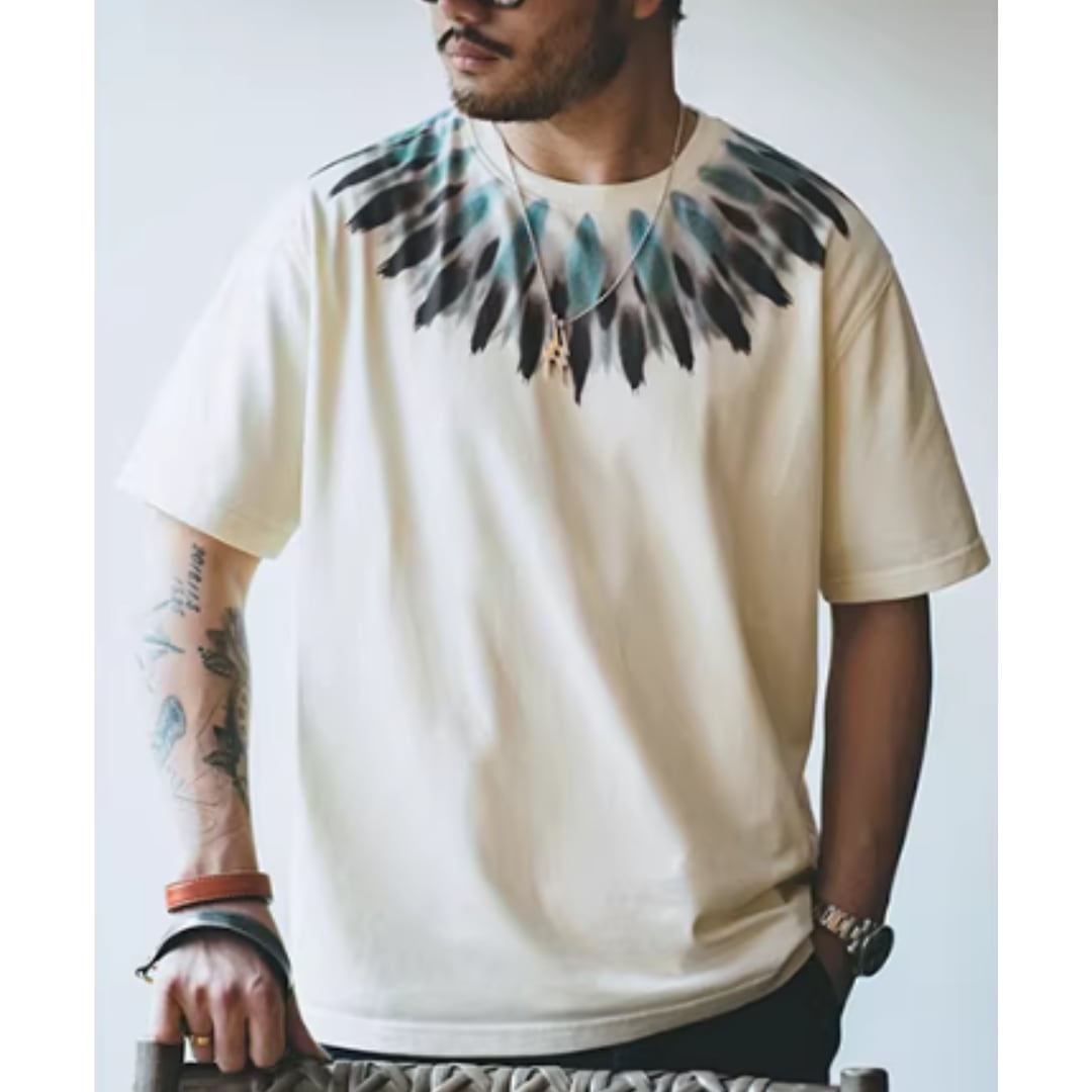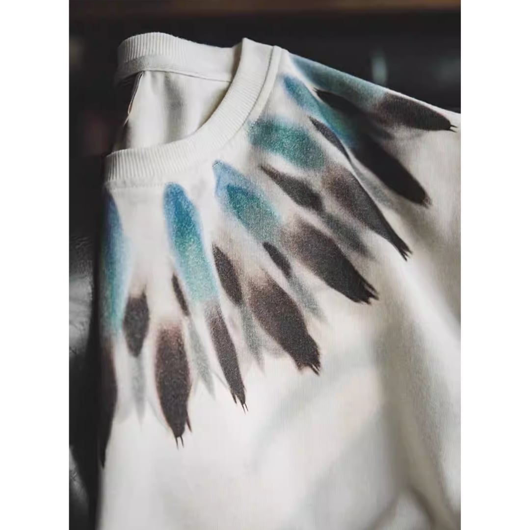 Indian Feather Print Retro Cotton Tee(GV322)