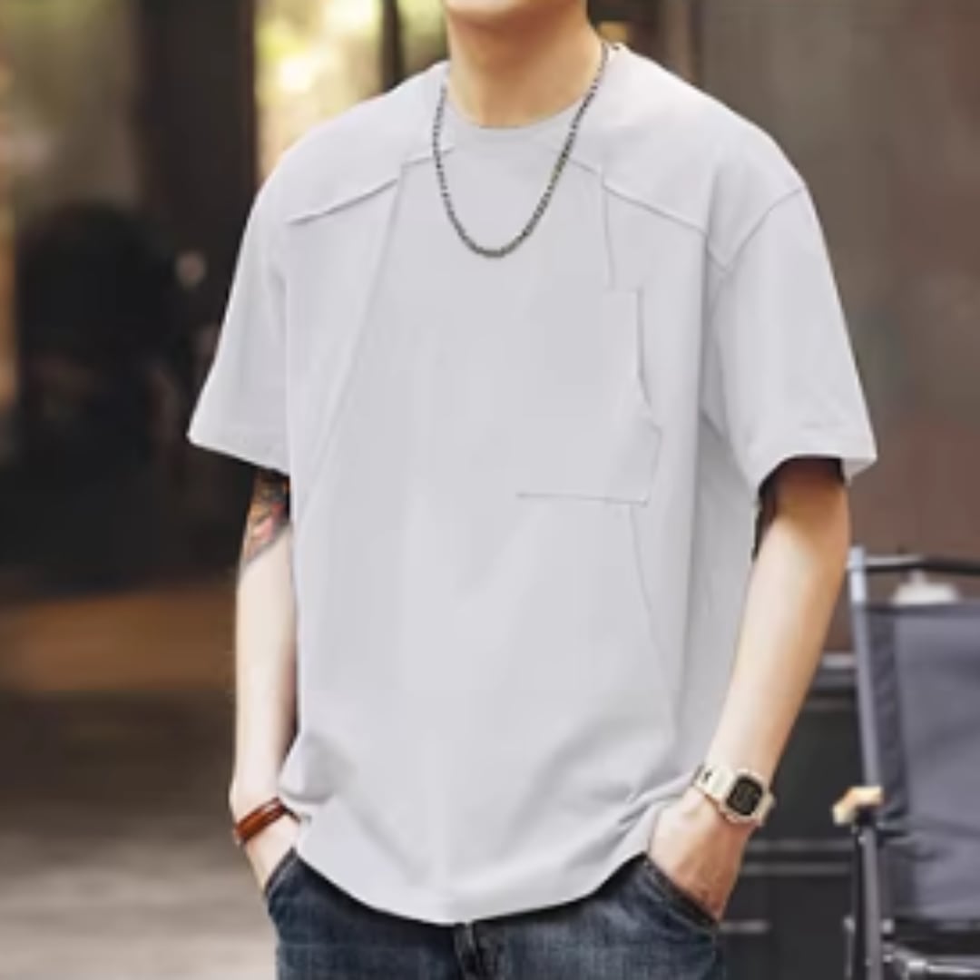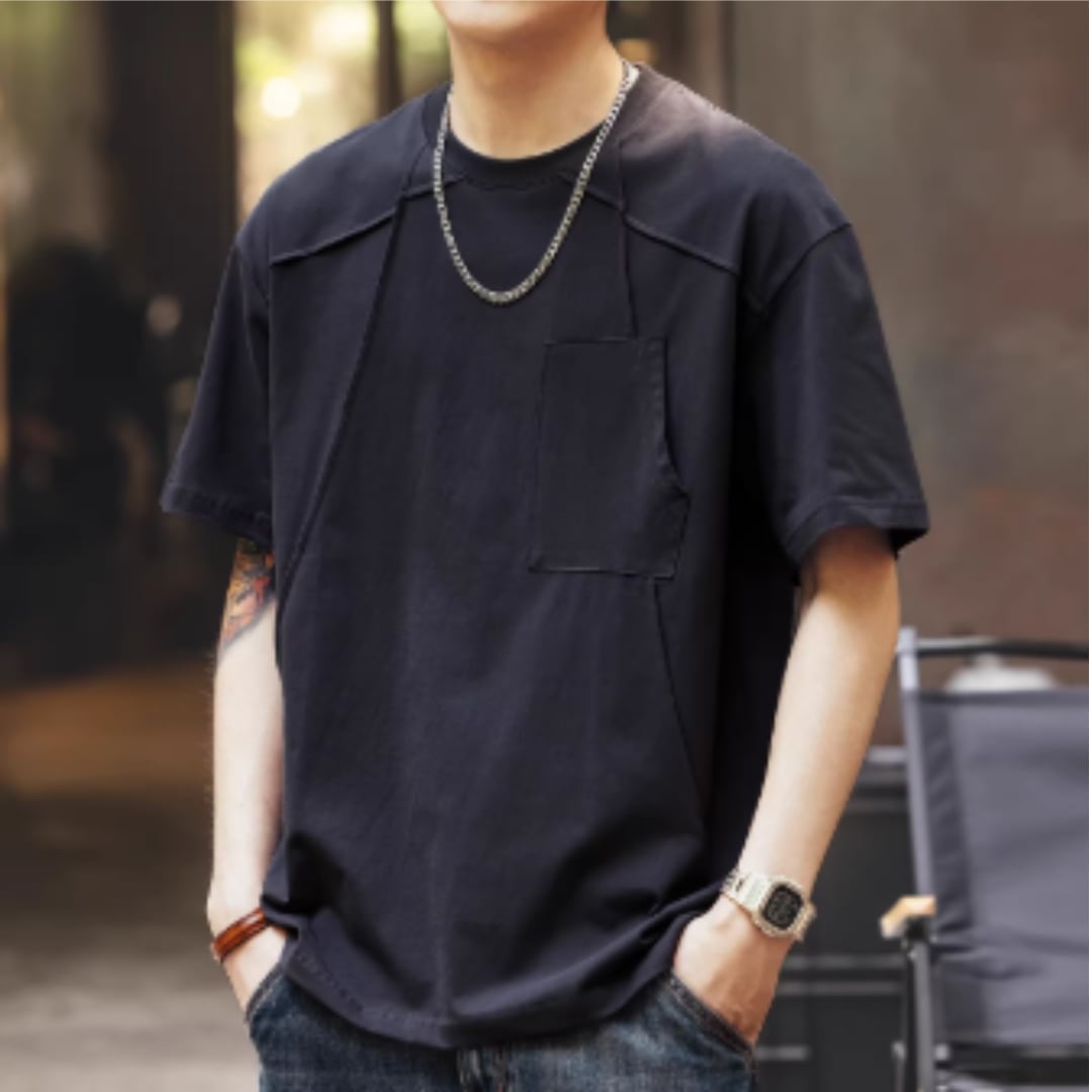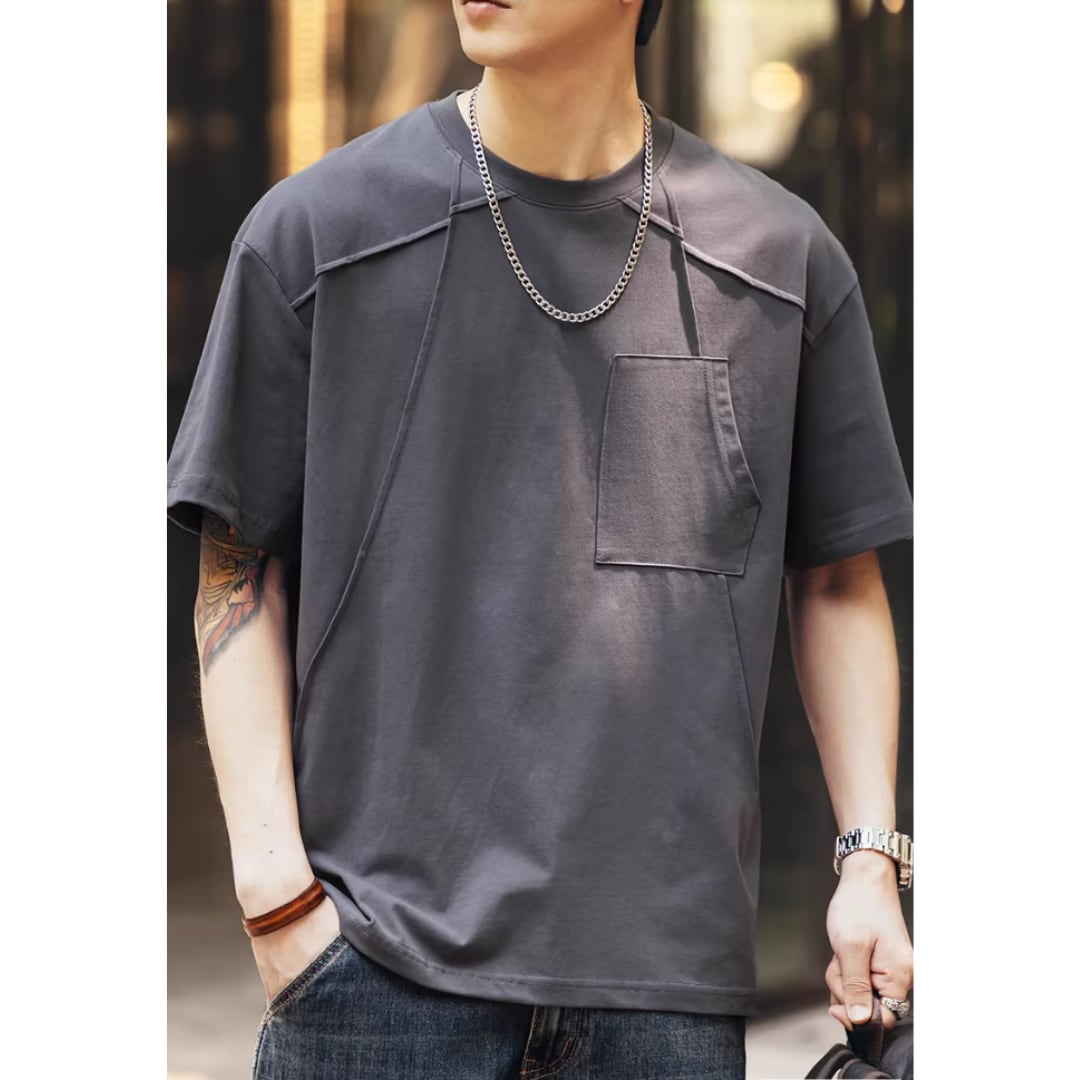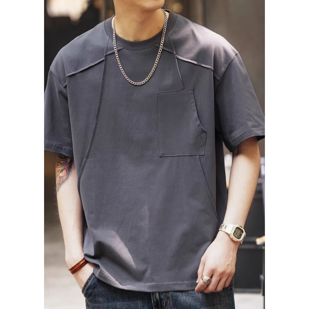 Vintage Loose Pleated Pocket Cotton Tee(GV333)