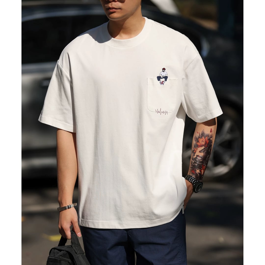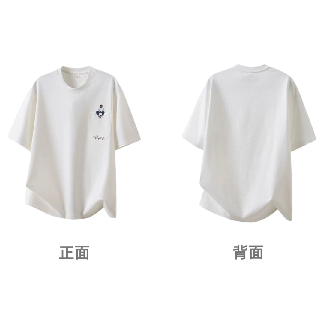 Embroidered Pocket Shoulder Summer Tee(GV376)