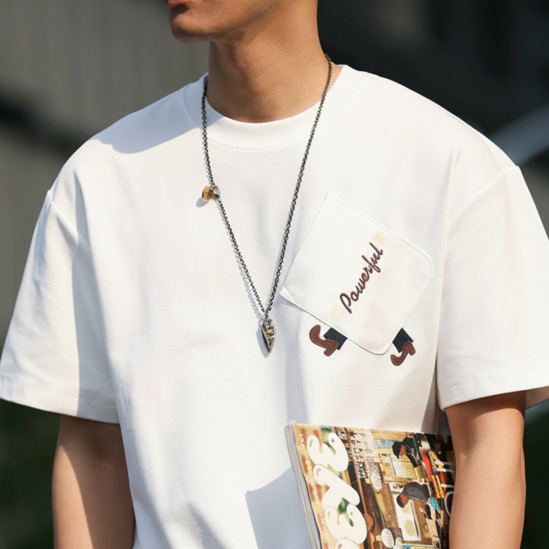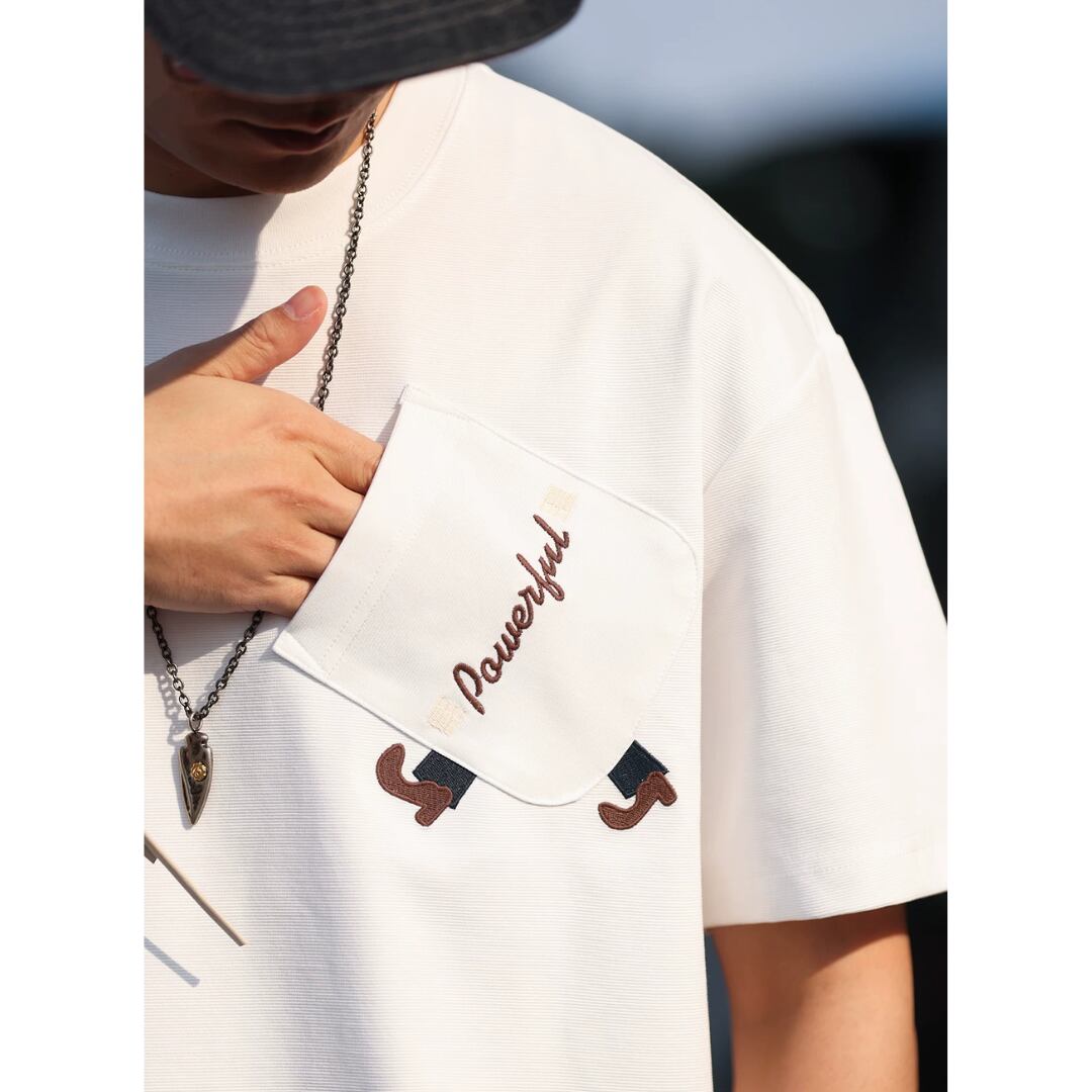Embroidery Pocket Loose Ladder TEE(GV377)